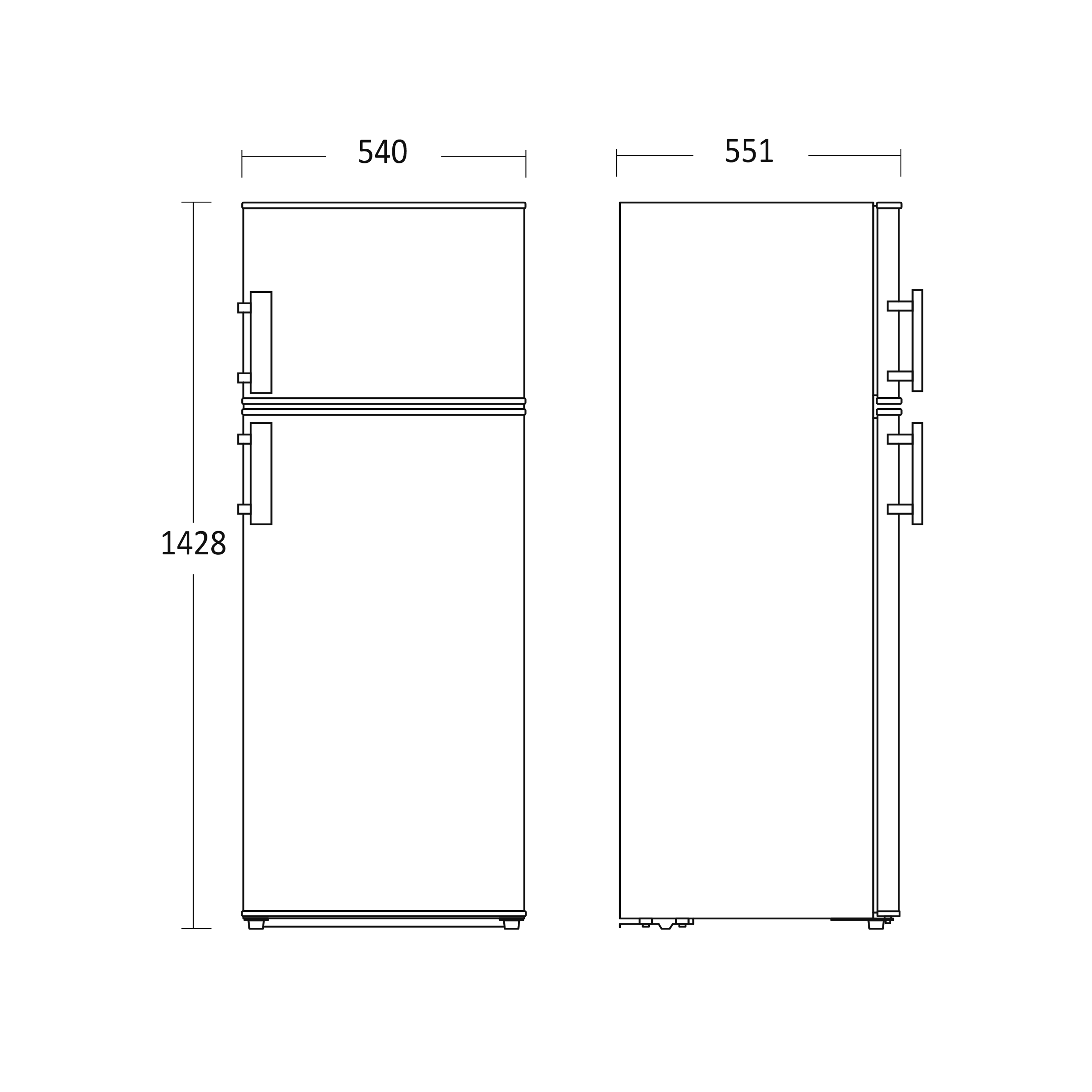 - Produktmål, HxBxD, mm 1428 x 540 x 551