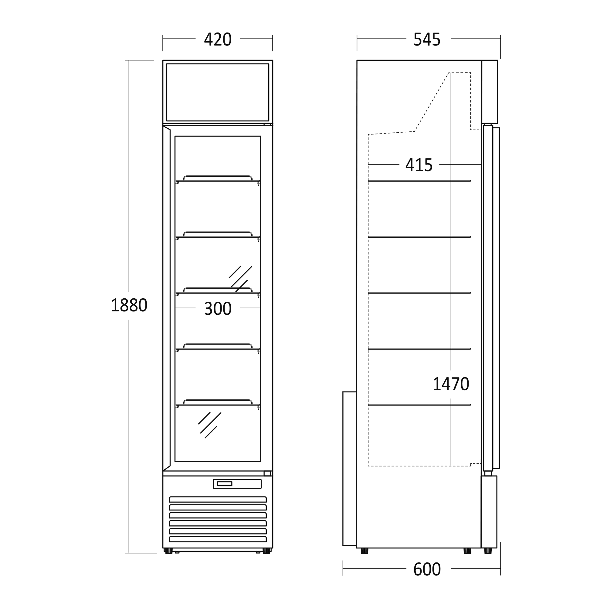- Produktmål, HxBxD, mm 1880 x 420 x 587