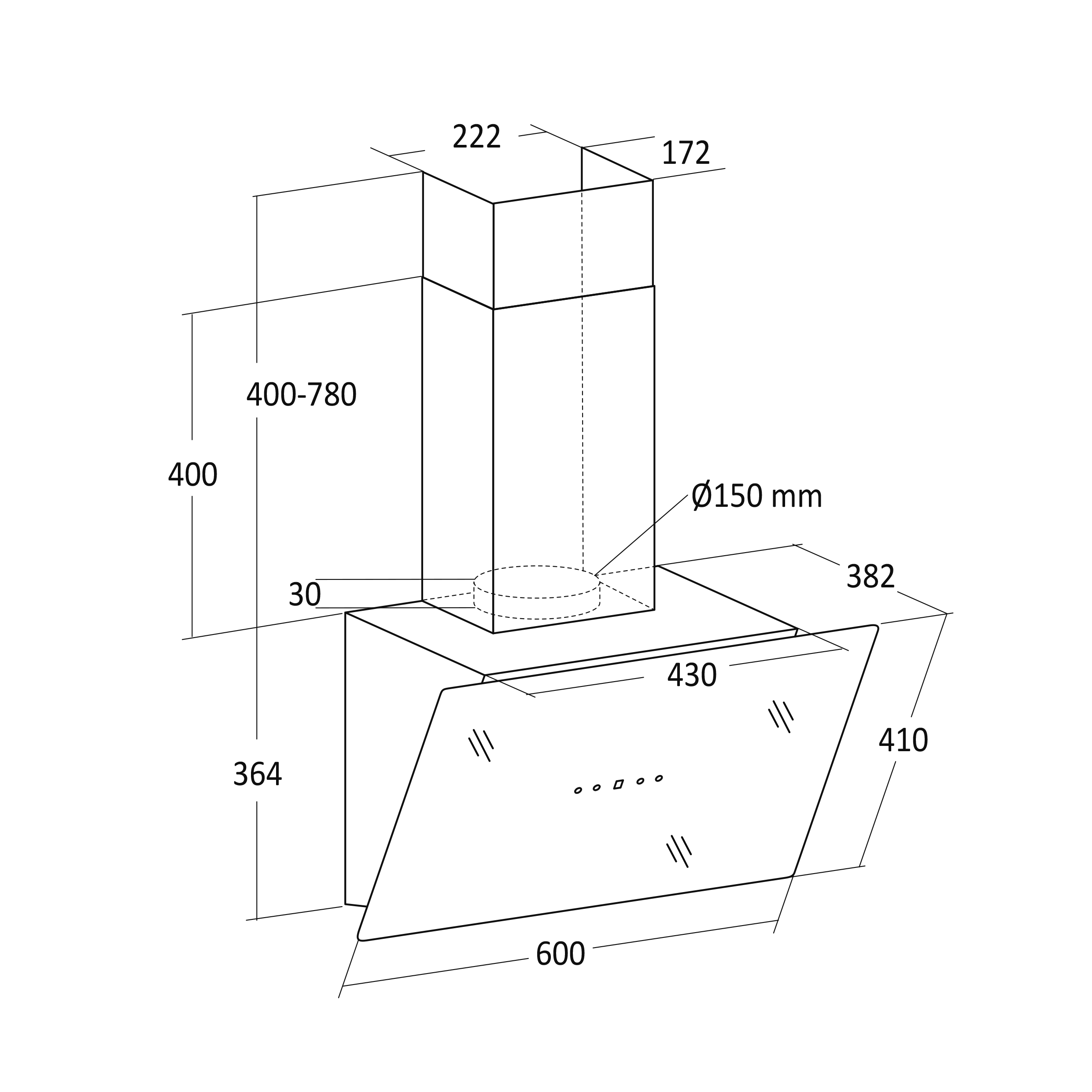 Skorsten (HxBxD), mm: 400x222x172