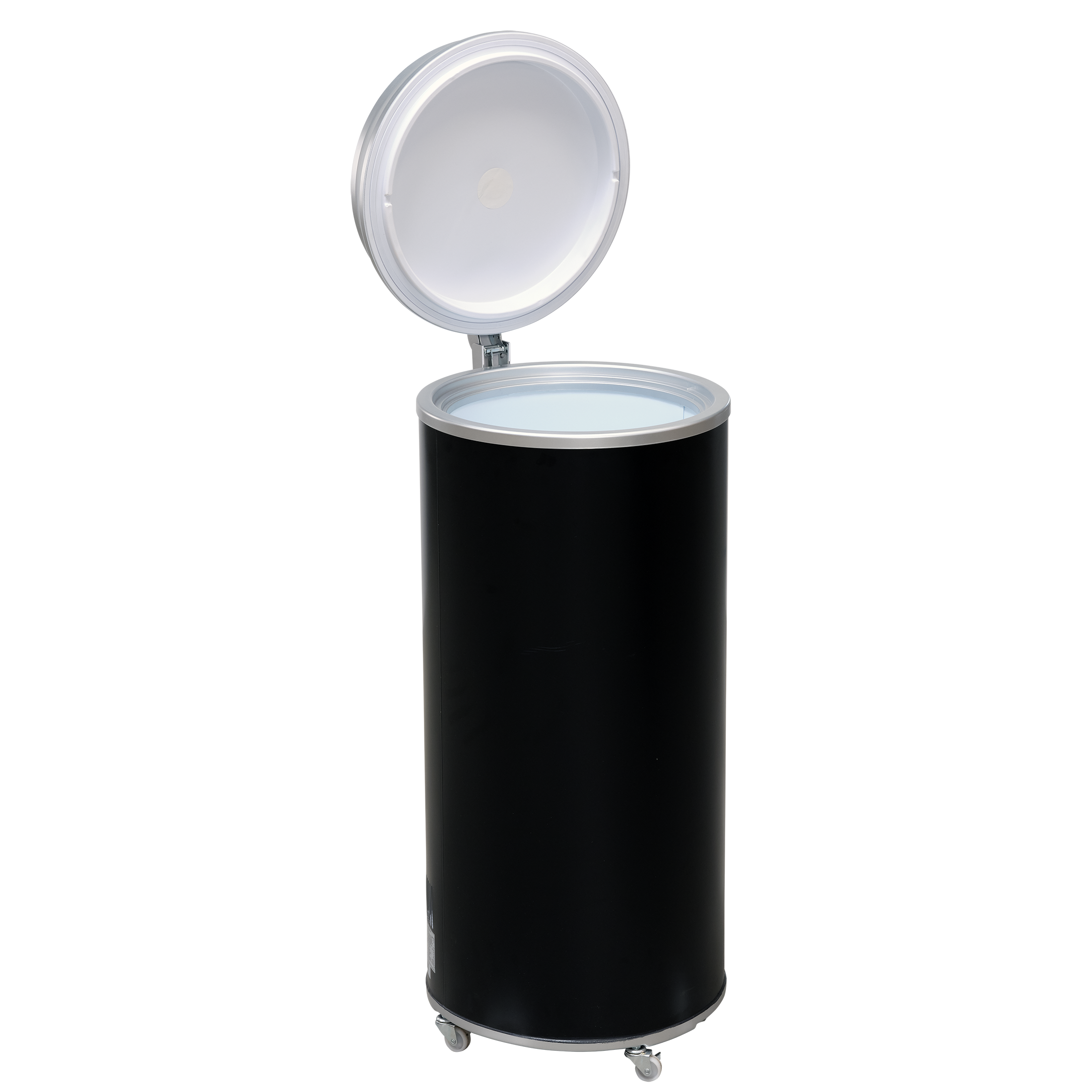 CC66BBCAN is black, but can also be decorated as desired. The round shape makes the cooler suitable for decorations. It provides a good eye-catcher and does not take up much space on the floor. The barrel shape makes it easy to place in any room, both inside and out. The model has a decorative lid that is designed like a real can. With its own brand decorated on the barrel, it will be a nice eye-catcher that stands out.