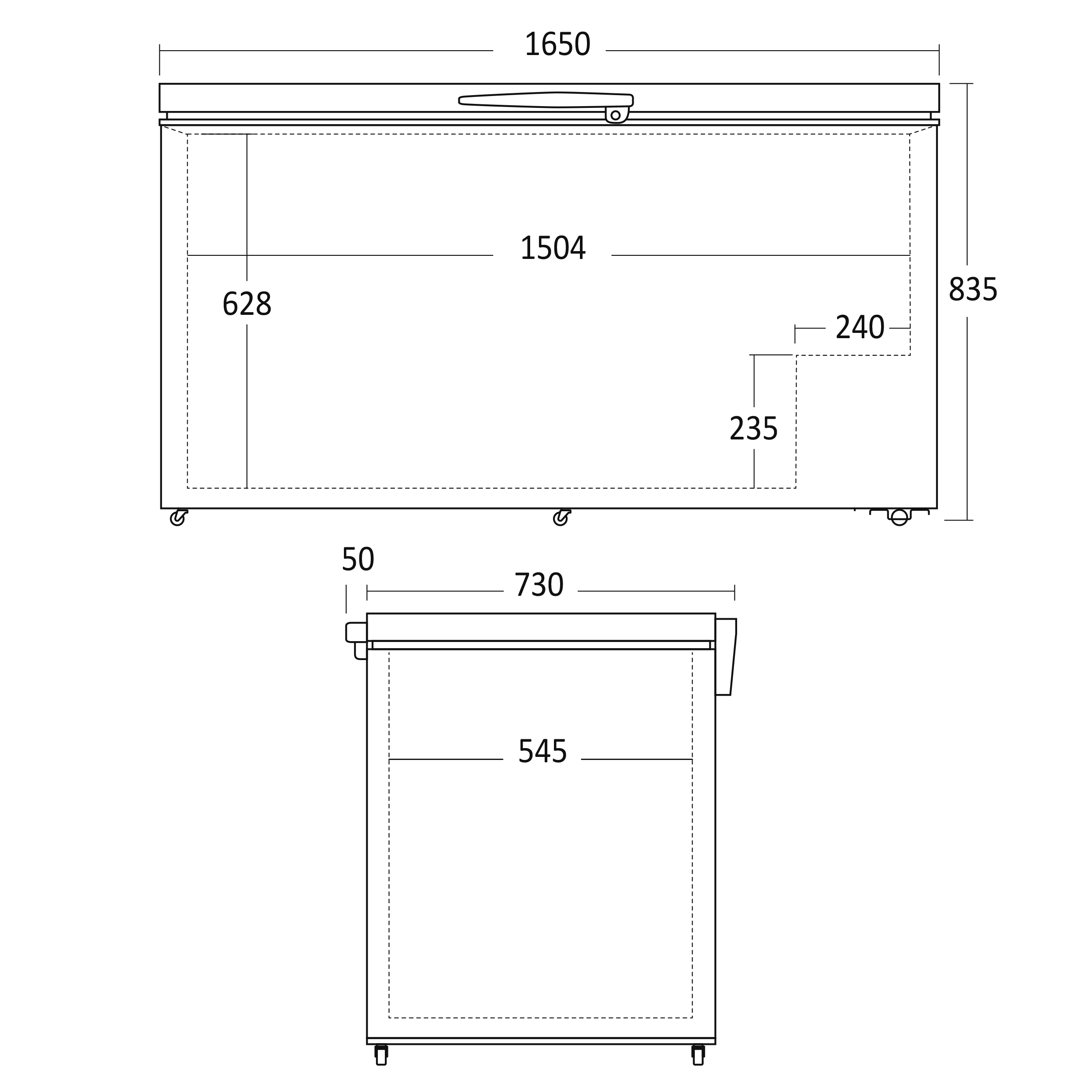 Internal dimensions, HxWxD, mm: 663 x 1504 x 545