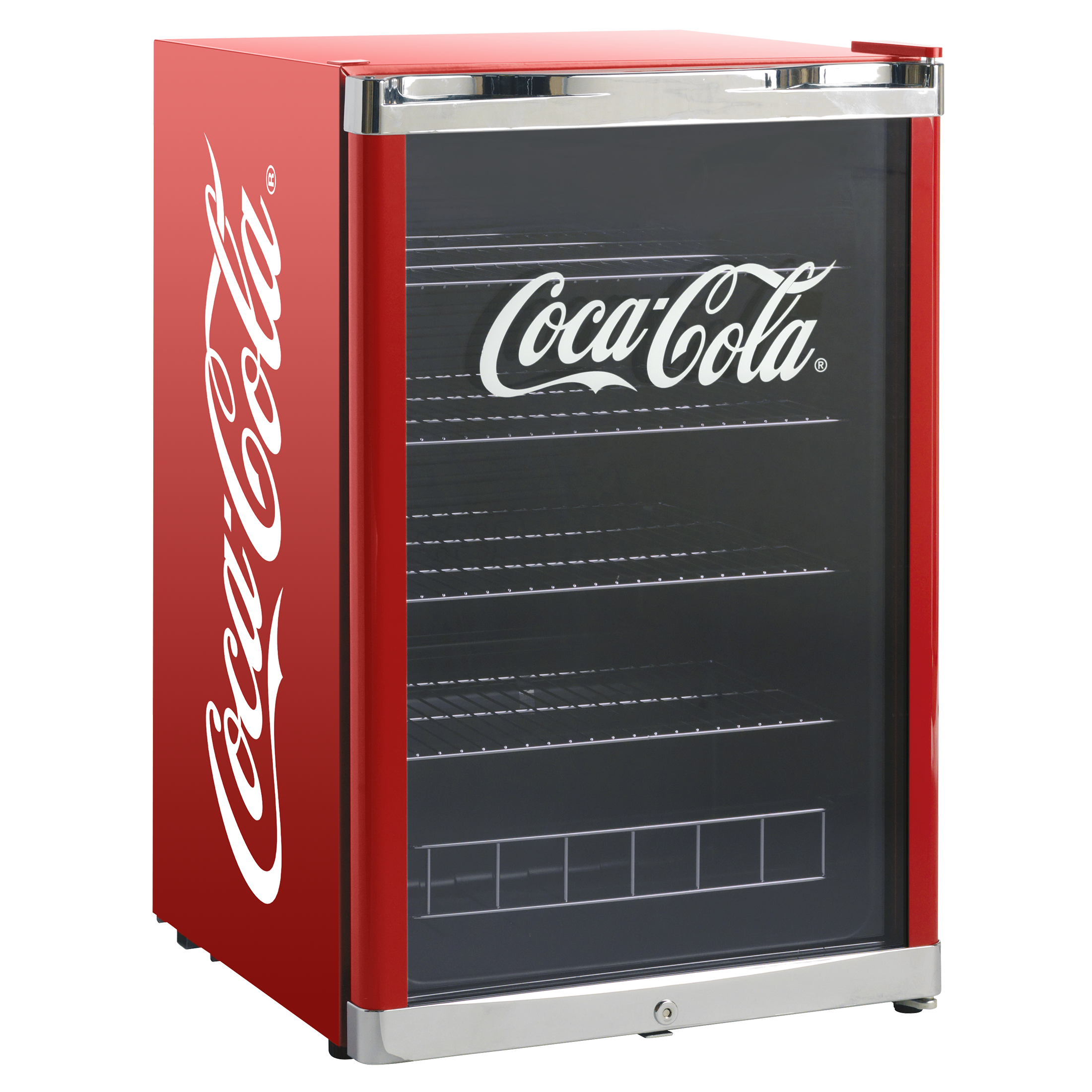 Scandomestic High Cube is the size of other small refrigerators, just with the nostalgic Coca Cola design, the classic red Coca Cola color, with the white Coca Cola logo on the sides and on the glass door. The fridge has an elegant, integrated chrome handle which completes the look of the stylish fridge.