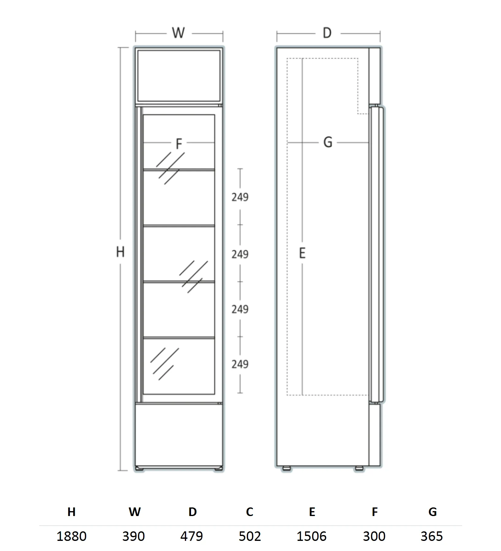 Product dimensions, HxWxD, mm: 1880 x 390 x 479