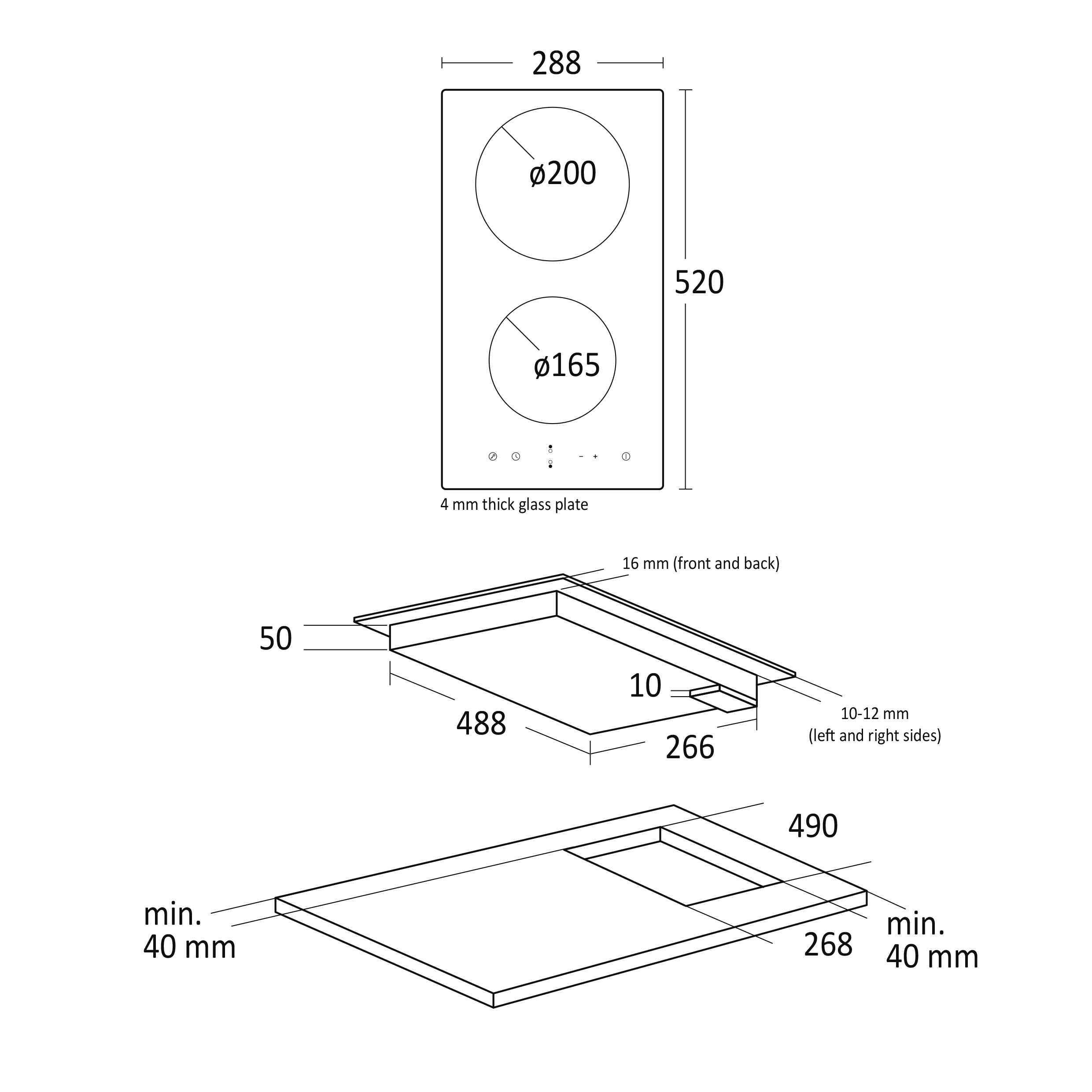 This hob has straight edges, and is therefore also suitable for flush gluing into the kitchen table.