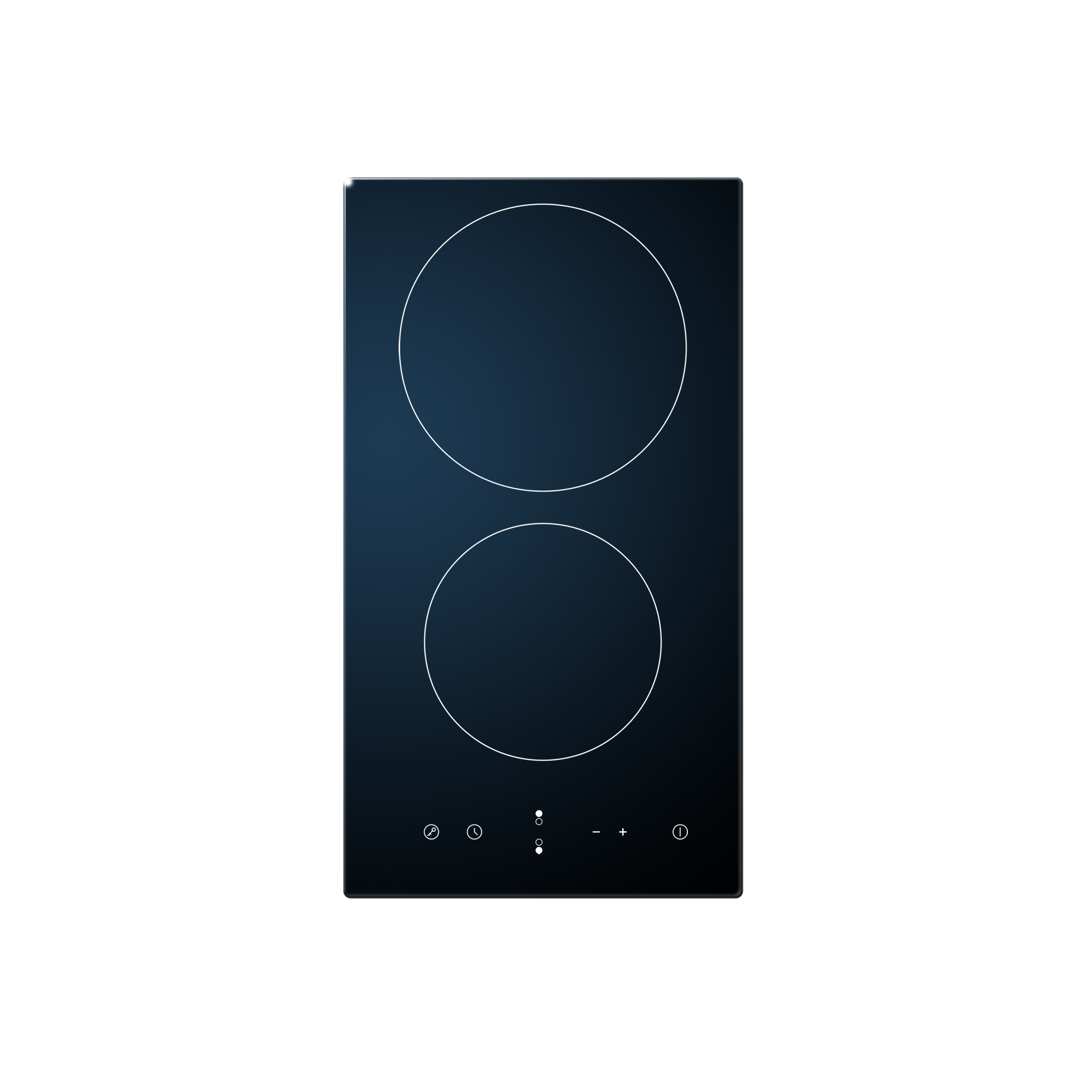 30 cm High-Light hob with touch panel and straight edges. The HOC30P is a Domino hob with two ceramic zones and is ideal for small kitchens or for combination with other 30 cm domino hobs. The plate has a residual heat indicator and a child lock.