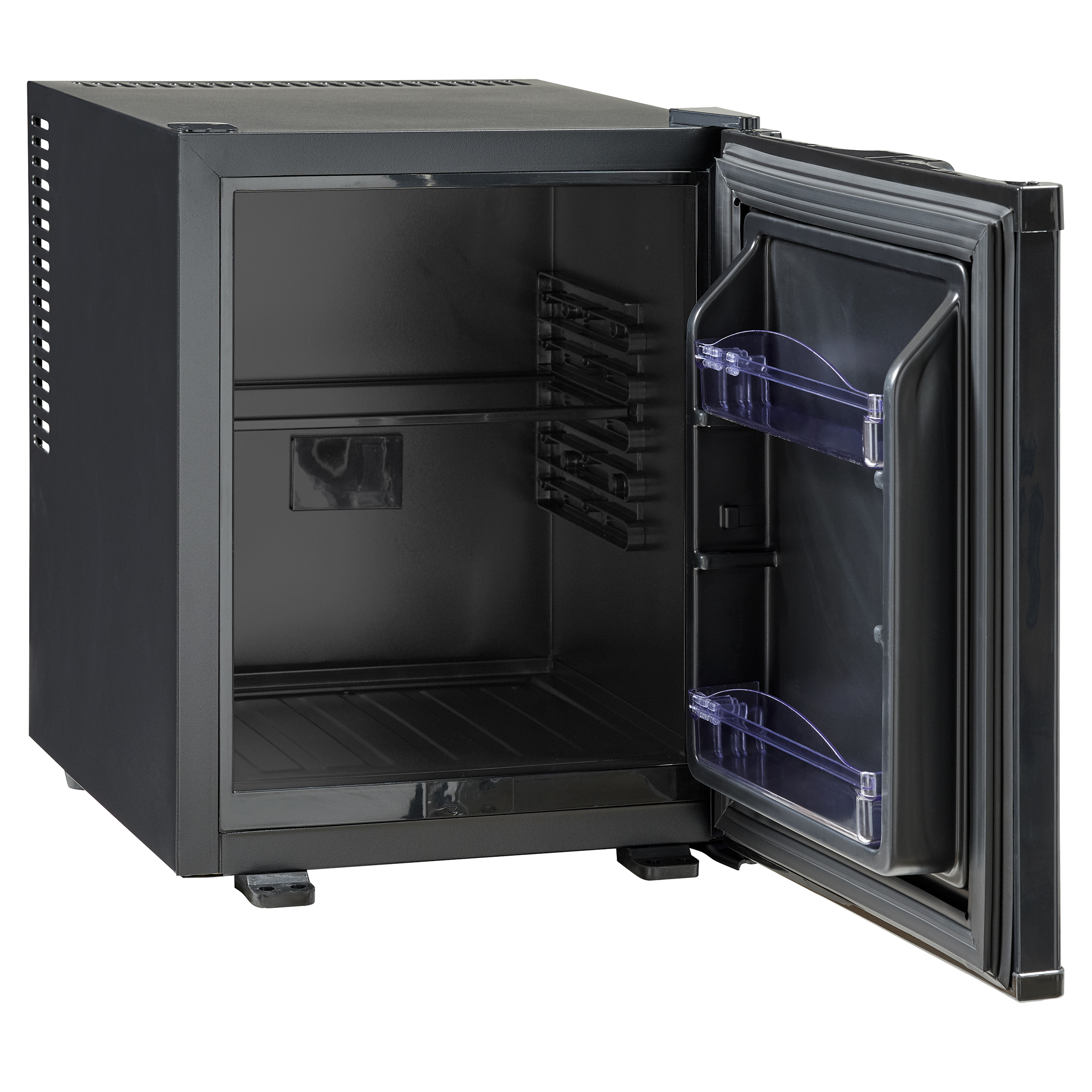The minibar has a 32 liter cooling compartment with the ability to cool down to a temperature between 6-8 °C. The cabinet has automatic defrosting and adjustable feet in the front, so the cabinet can stand flat on any surface.