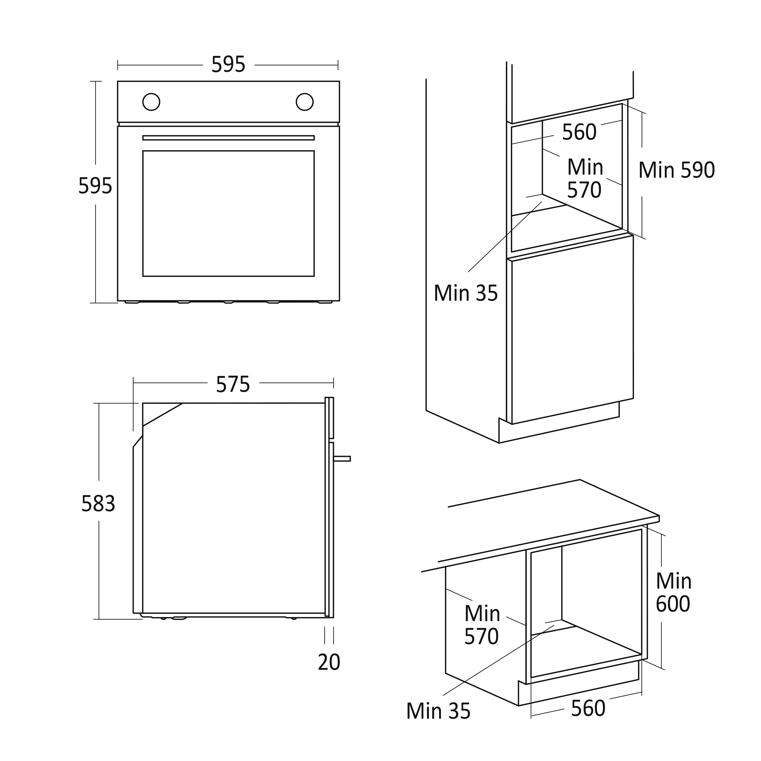 Built-In dimesions, HxWxD, mm: 590 x 560 x 570