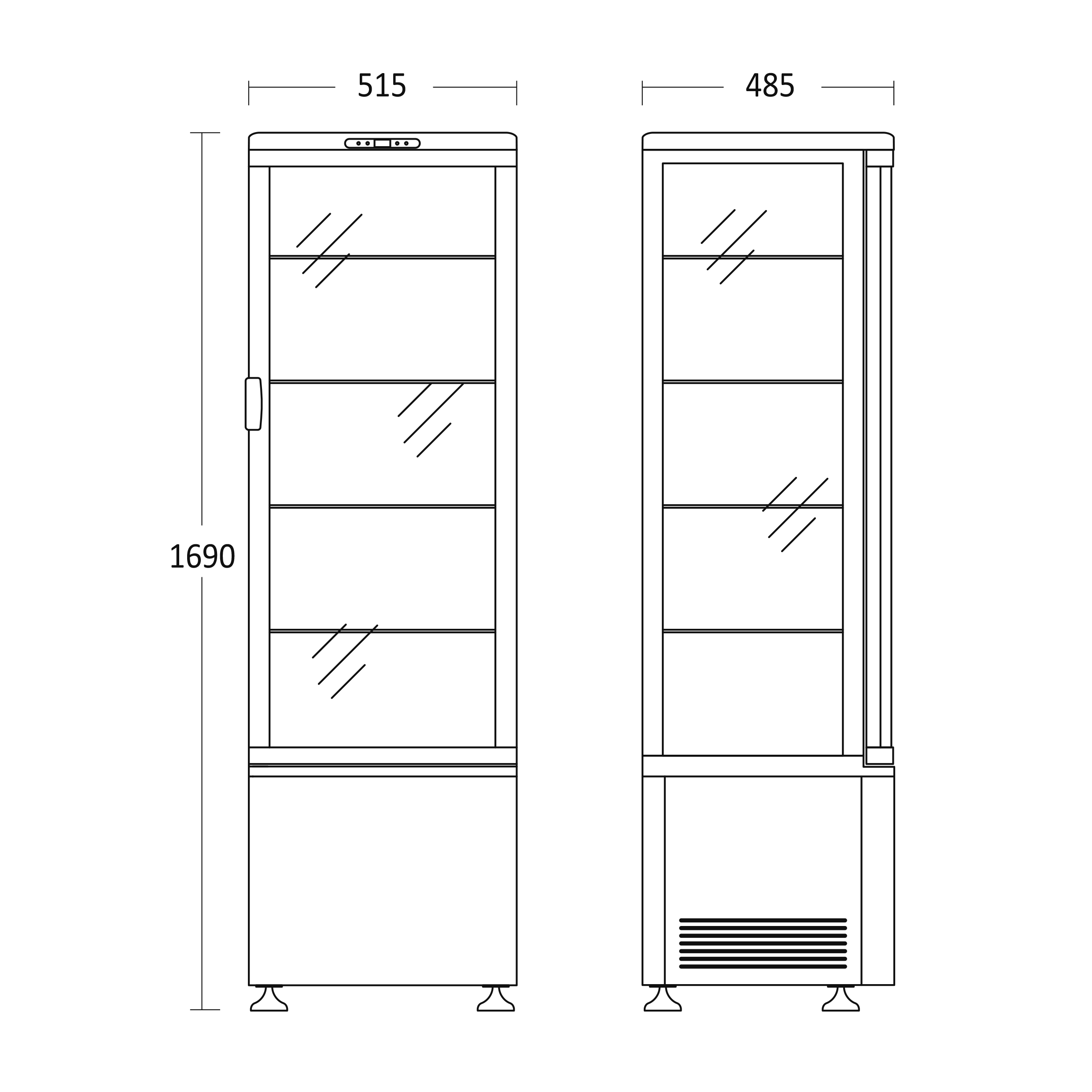 - Product dimensions, HxWxD, mm 1690 x 515 x 485