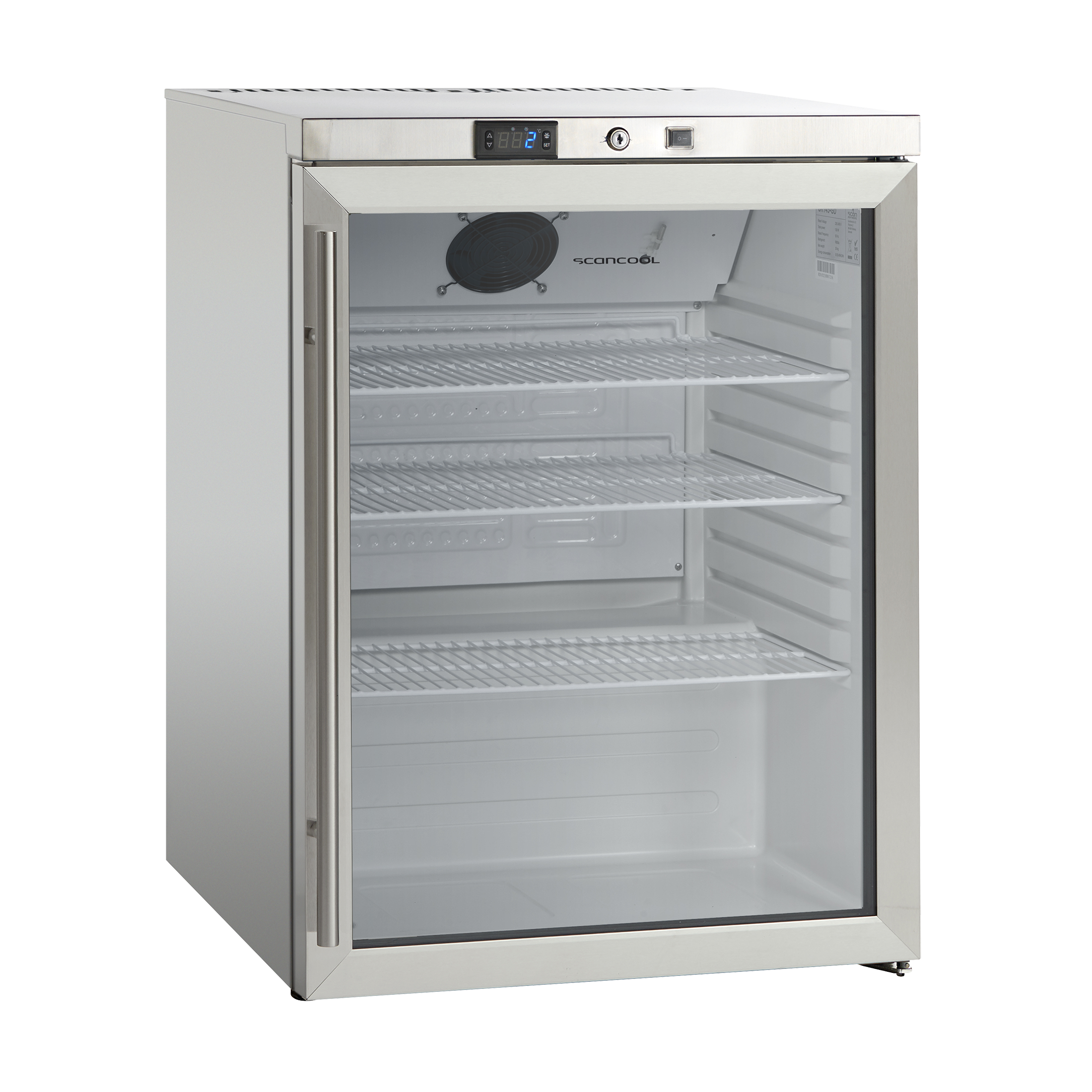 SK 145 GDE is a 1-door storage refrigerator, with stainless steel cabinet and glass door of 145 net liters.
