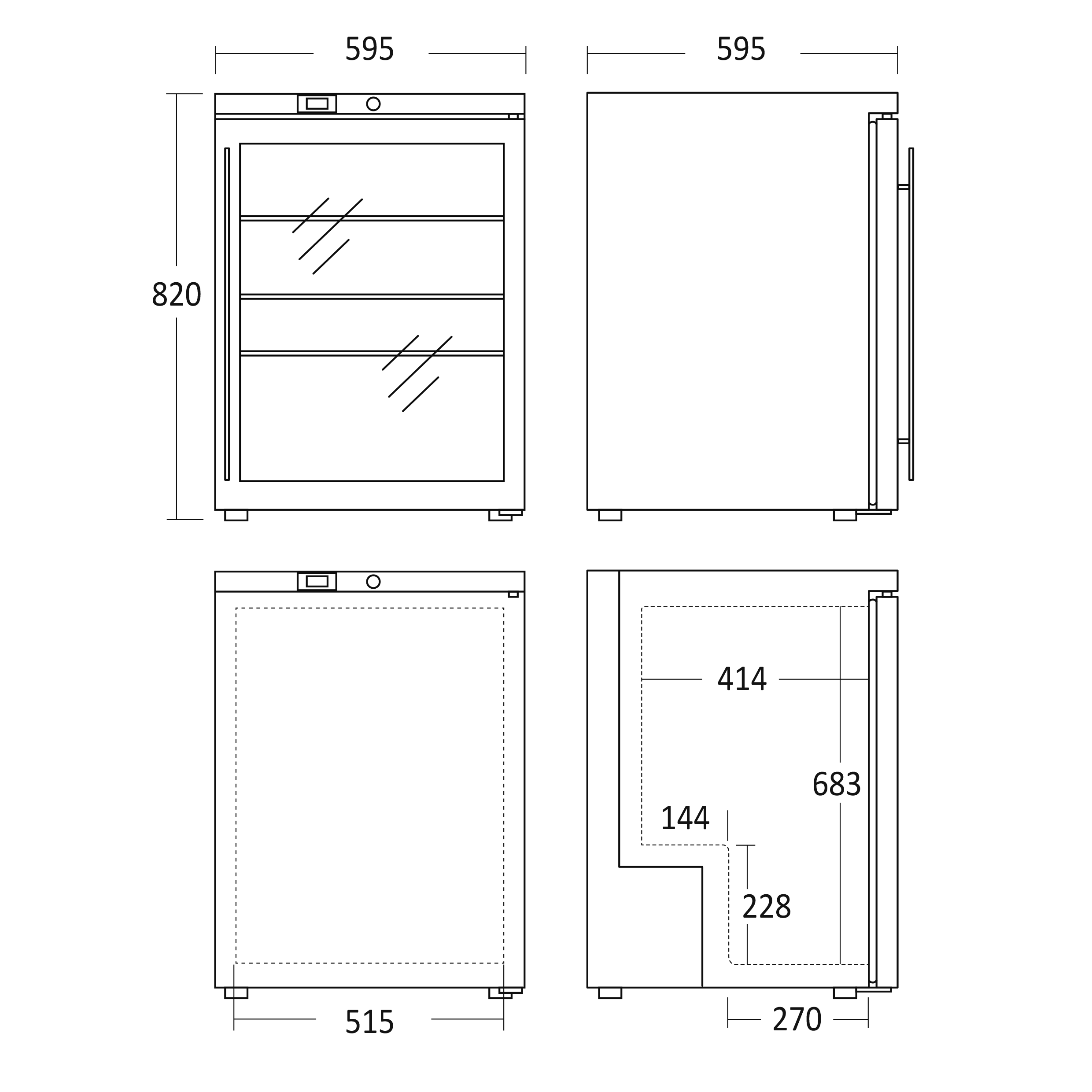 82 cm in height allows the cabinet to be built under a table. Temperature range between 0-10 °C.