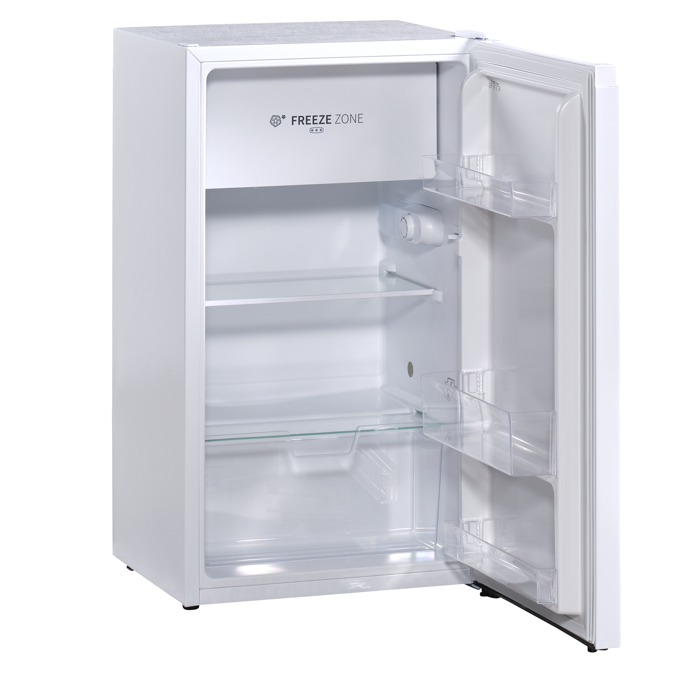 Small practical refrigerator with 75L cooling capacity, and 7L integrated freezer compartment. The cabinet can stand freely, so the top plate of the cabinet provides an extra table space at your fingertips.