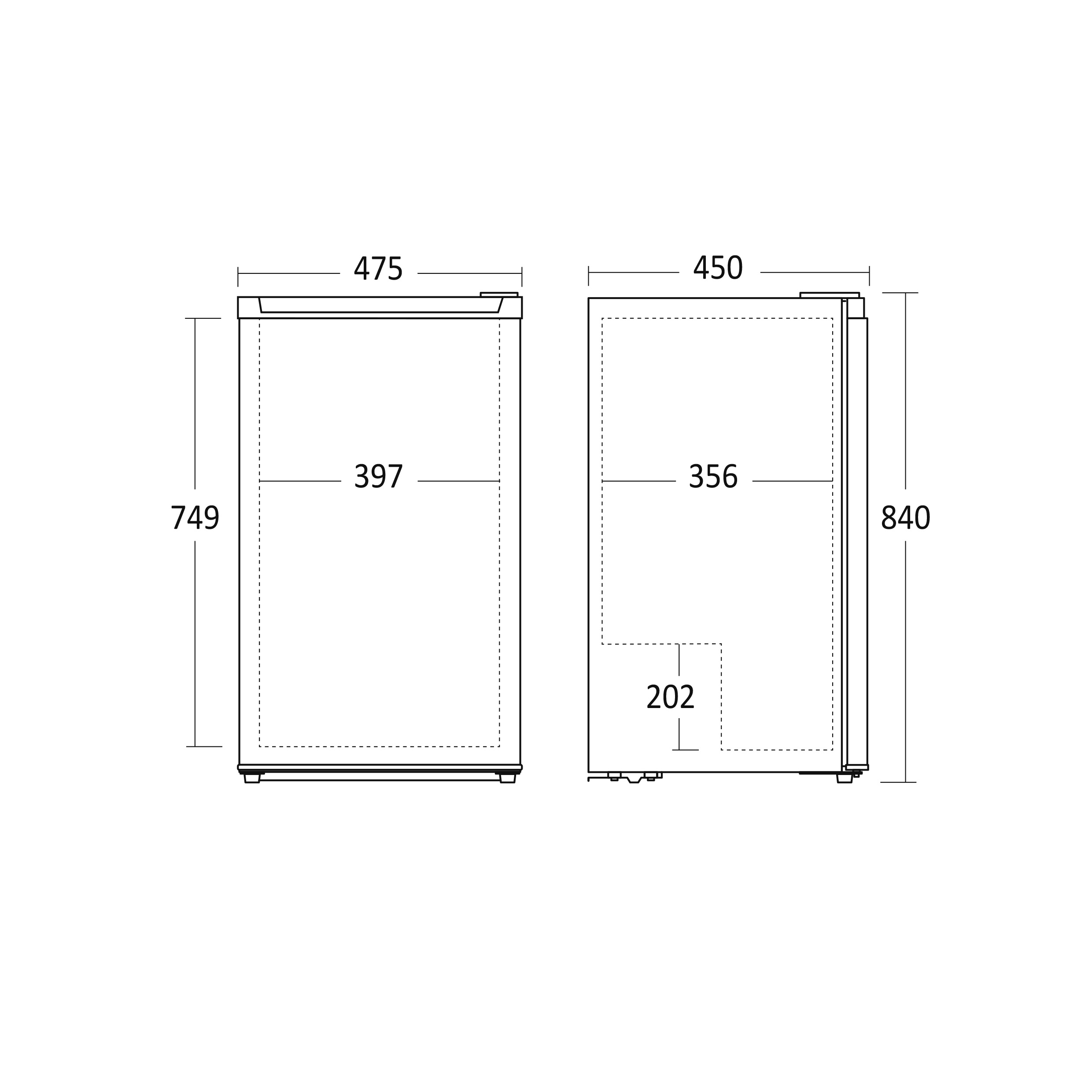 SKS92WE dimensions W: 475 x D: 448 are ideal for small homes, camping, etc.