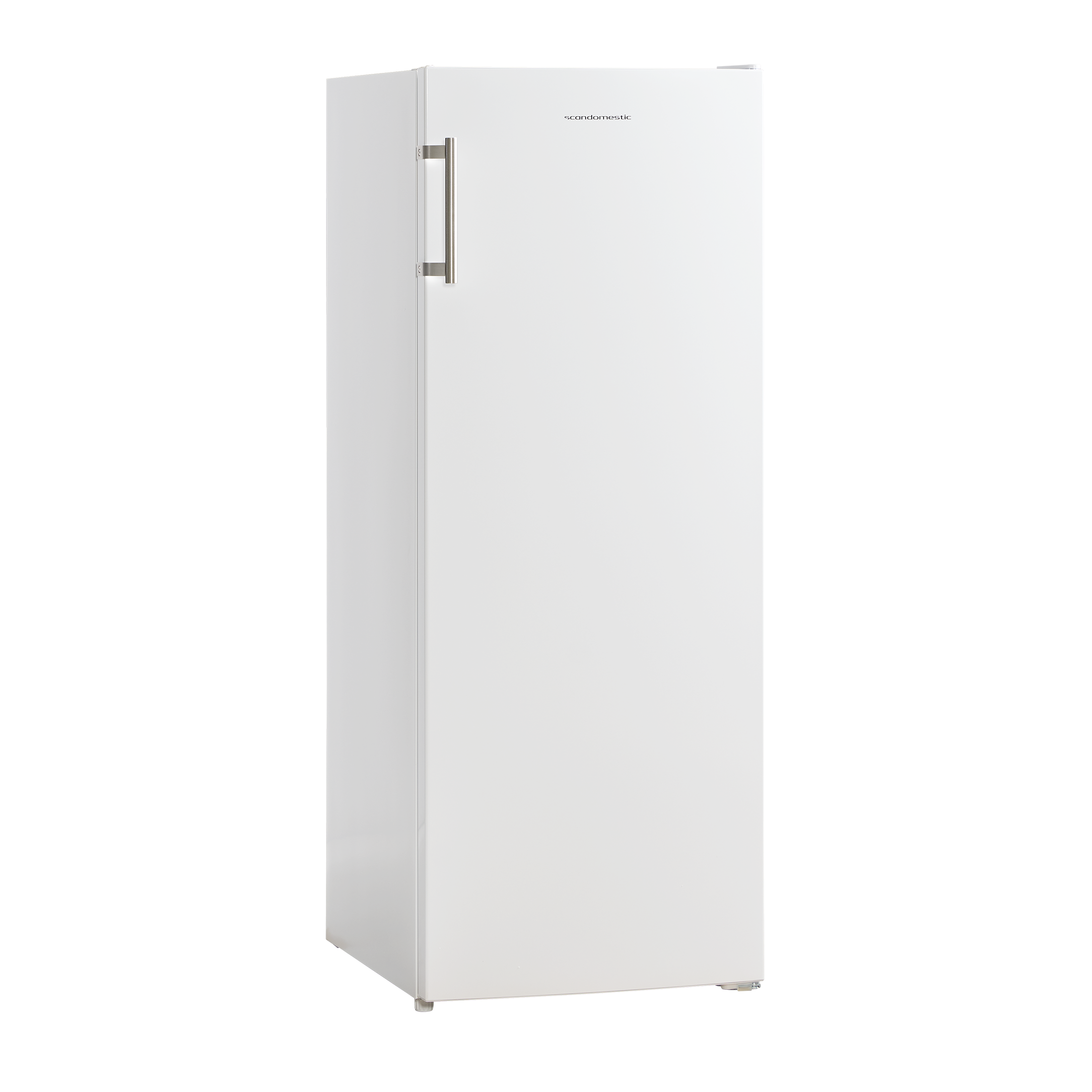 Hvid fryseskab med et robust håndtag i stål giver ikke alene skabet et mere eksklusivt udseende, men også et stærkt greb som aldrig knækker.