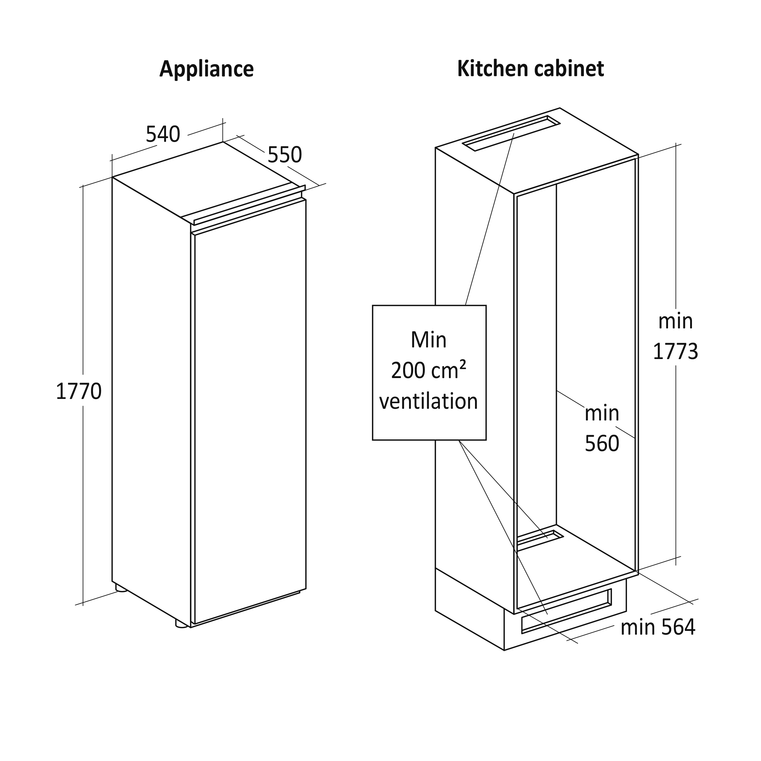 - Produktmål, HxBxD, mm 1785 x 540 x 550