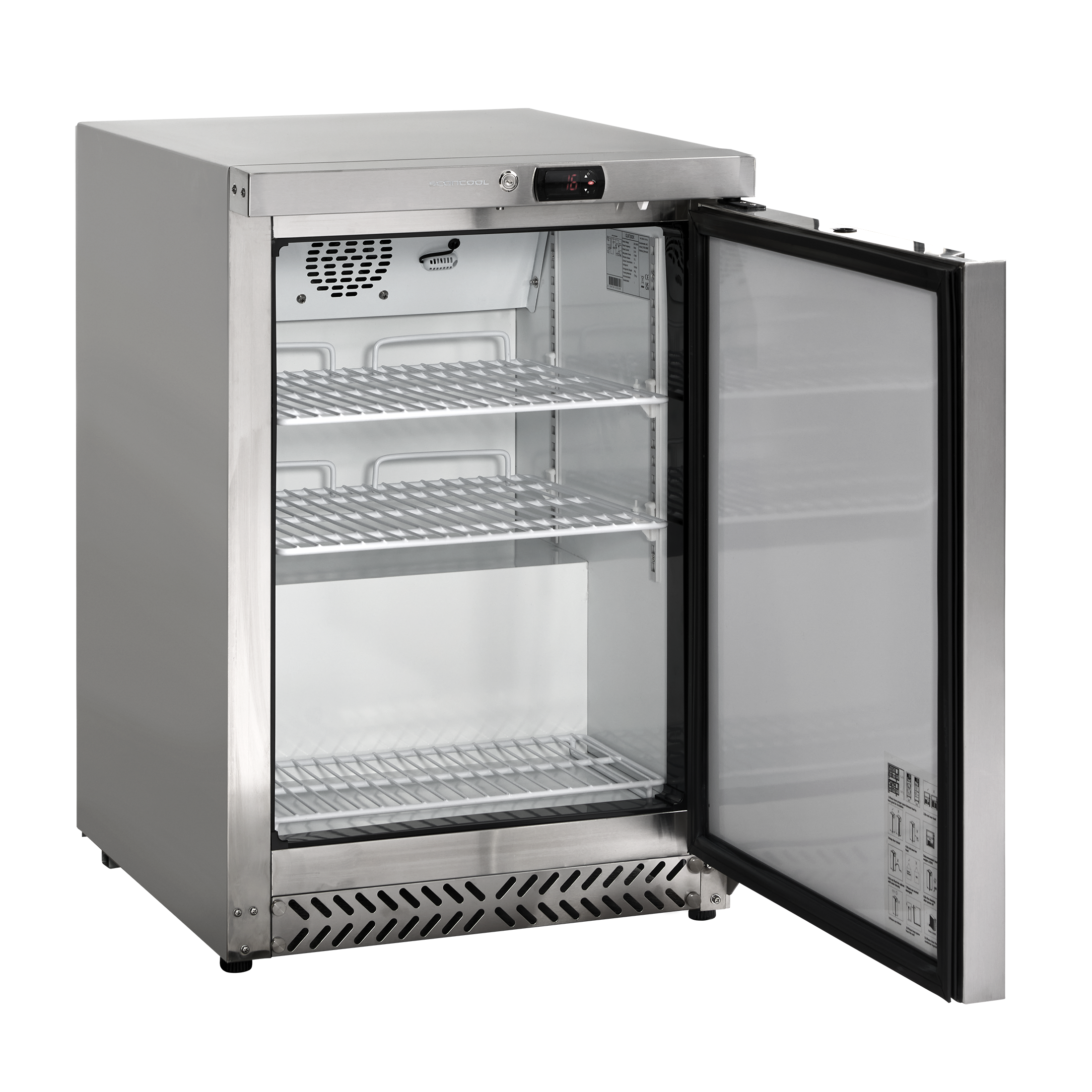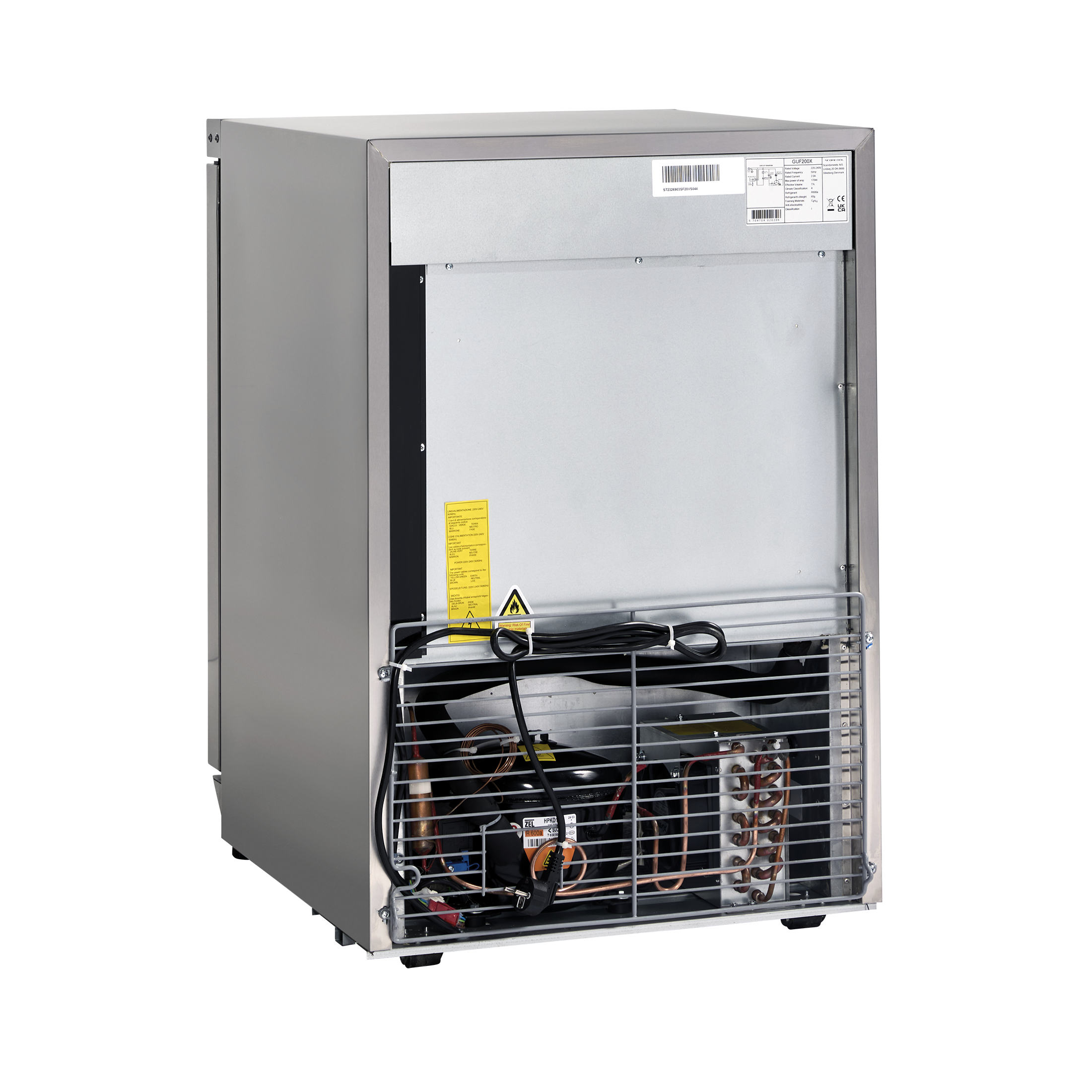 GUF200X er et 1-dørs lagerfryseskab med rustfri kabinet og 73 liter fryserum.