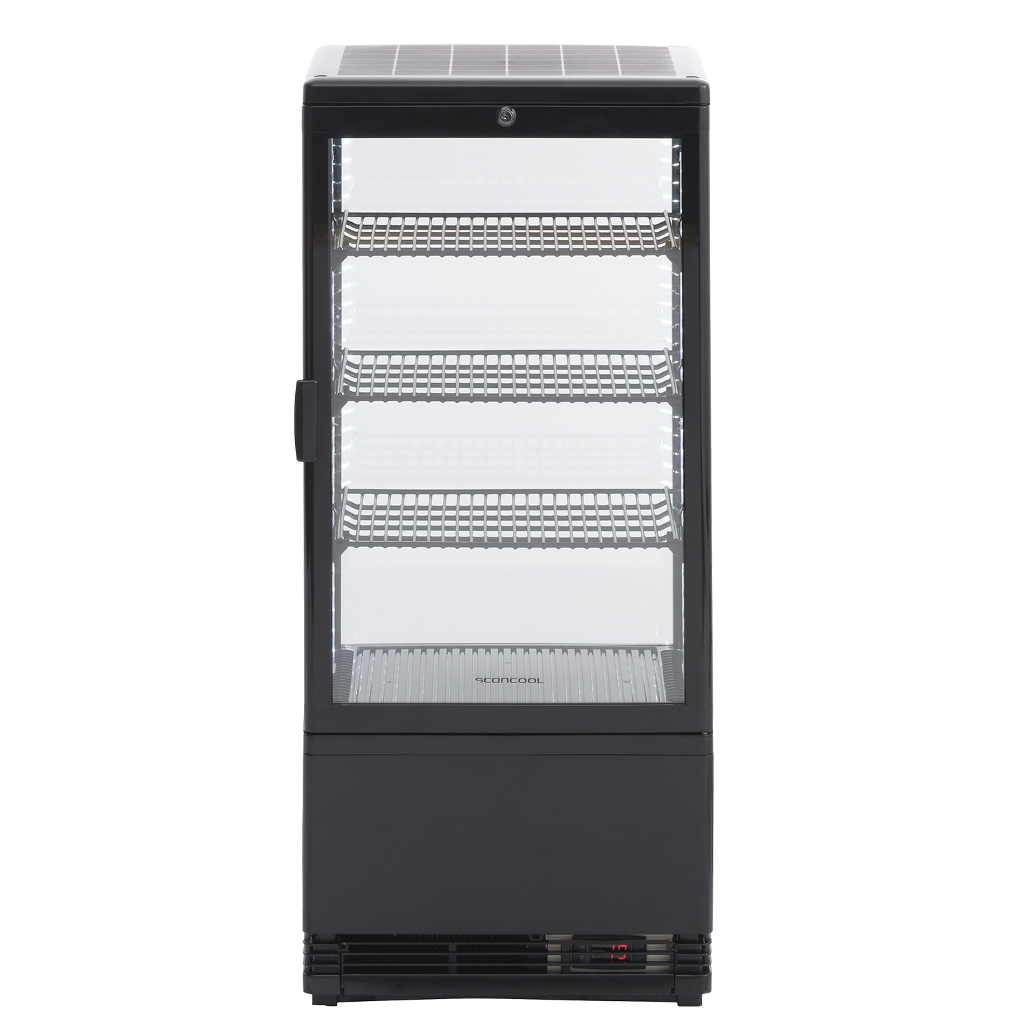 Køleskabet har 4 fødder, 3 justerbare hylder og dørlås. Impulskøleren har dobbeltglas på alle fire sider, hvilket holder ekstra på kulden. Kondensator på bagsiden gør vedligeholdelsen nem.