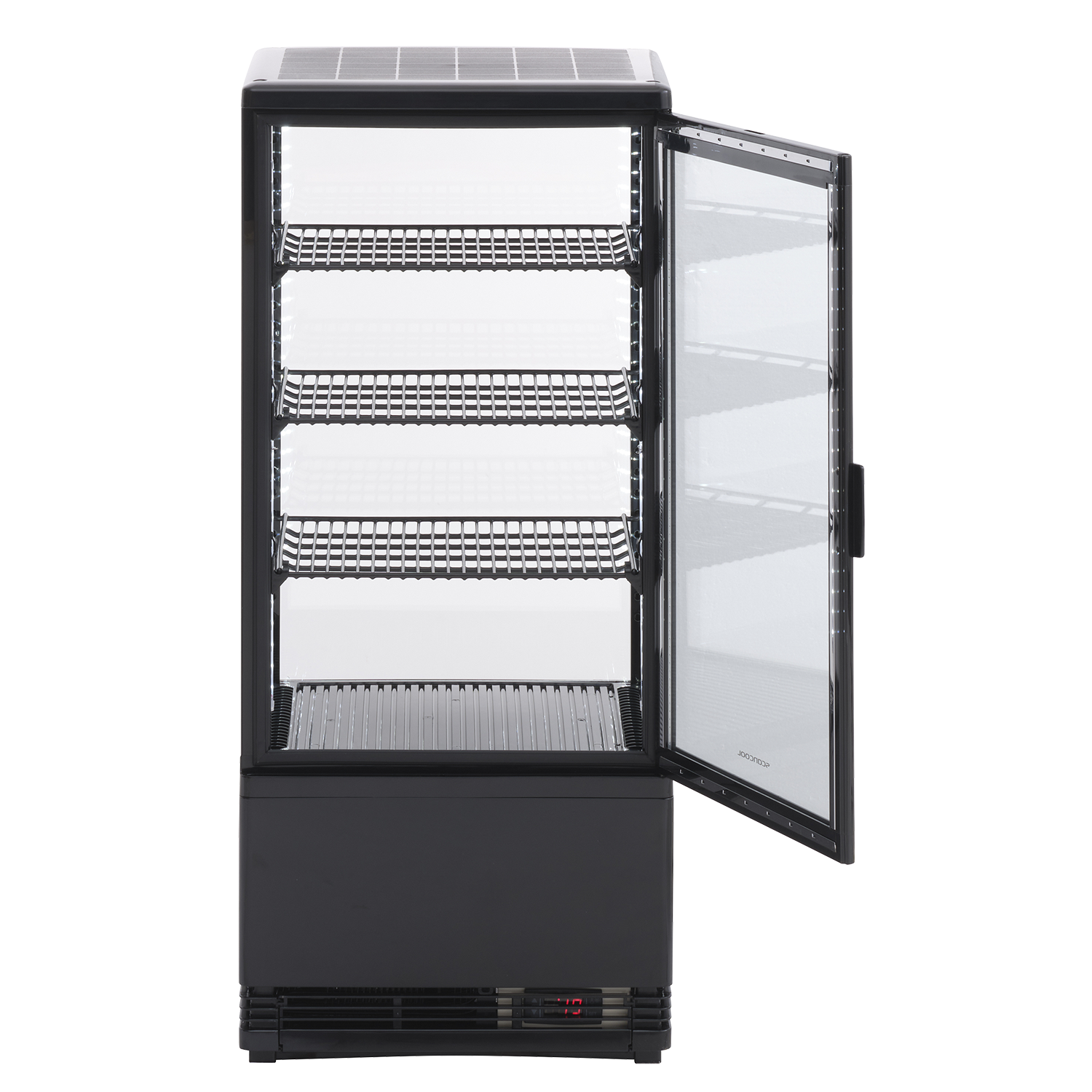 Til det formål er RT82BE perfekt til at fremvise varer på en indbydende måde i bagerier, delikatesseforretninger, caféer, supermarkeder, tankstationer og specialbutikker.