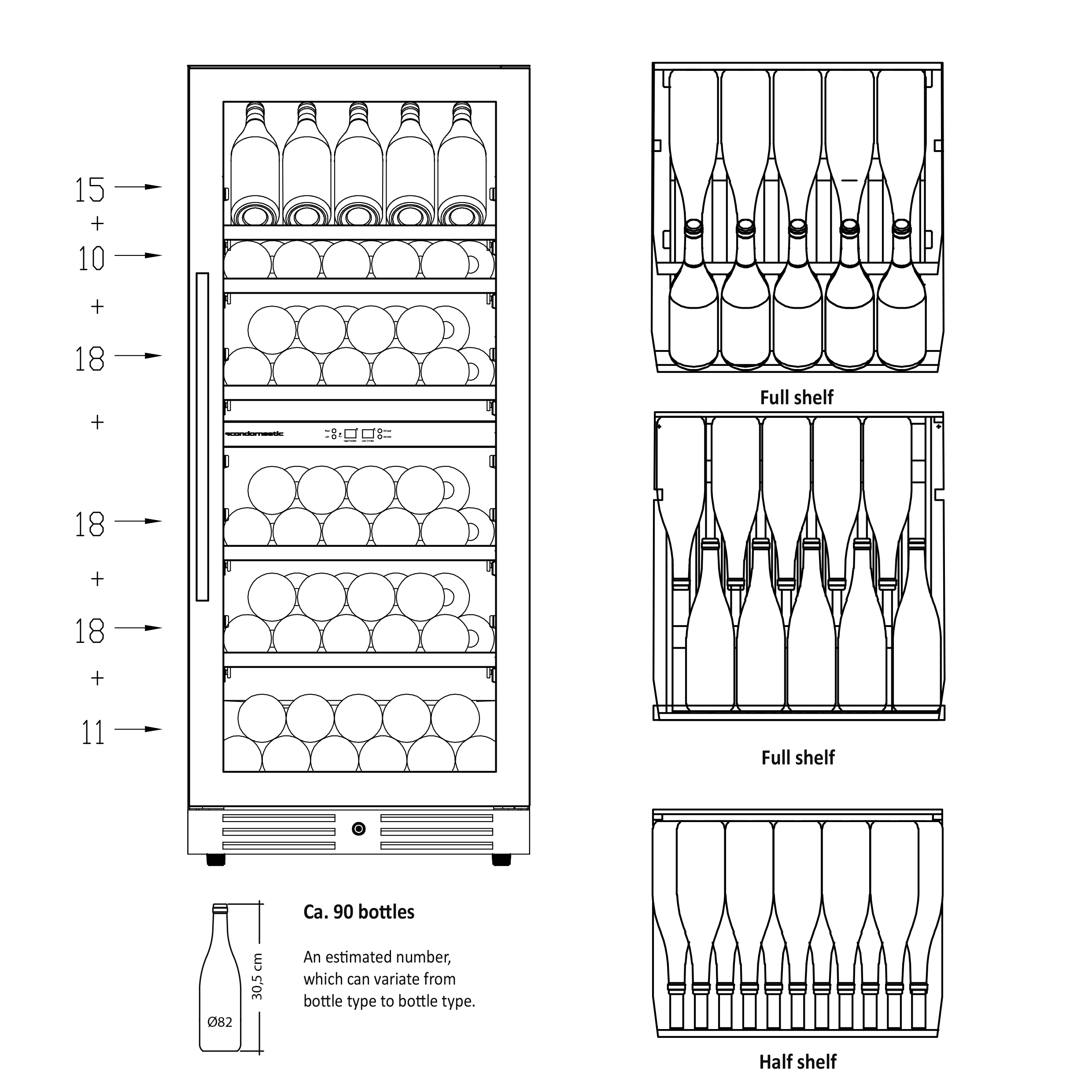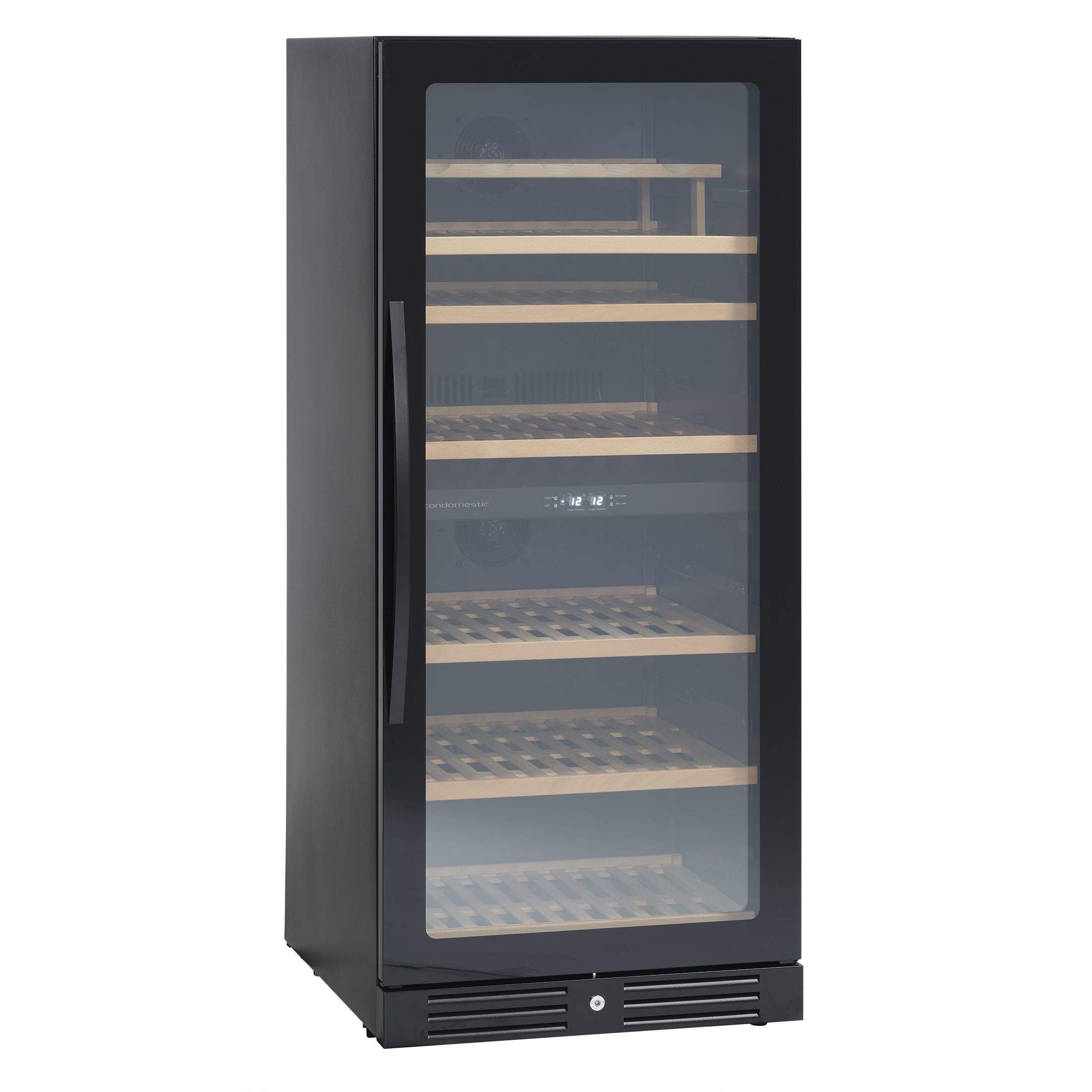 2 horisontale LED lys giver et godt lys og repræsenterer vinen flot. Skabet har luftcirkulationssystem, som sikrer perfekt ventileret, anti-vibrationskøling i hele skabet.