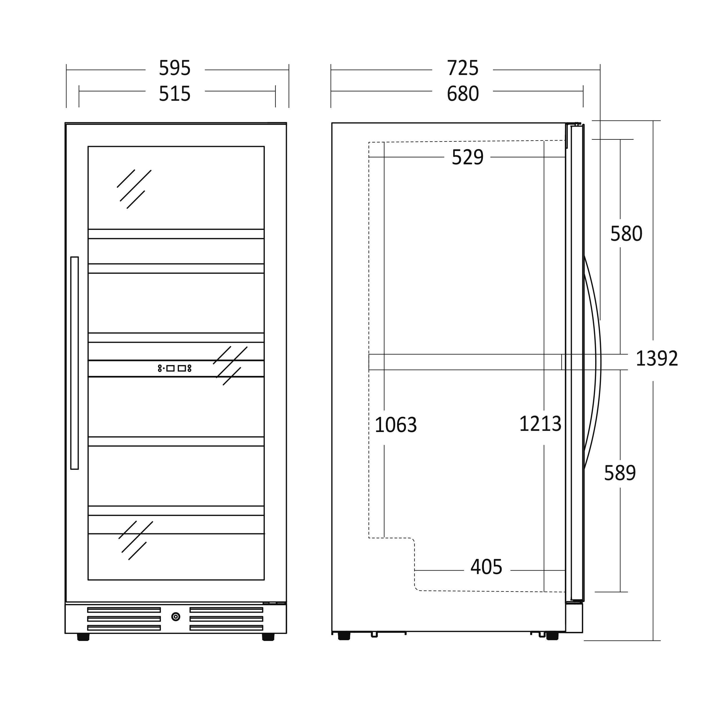 - Produktmål, HxBxD, mm 1392 x 595 x 680