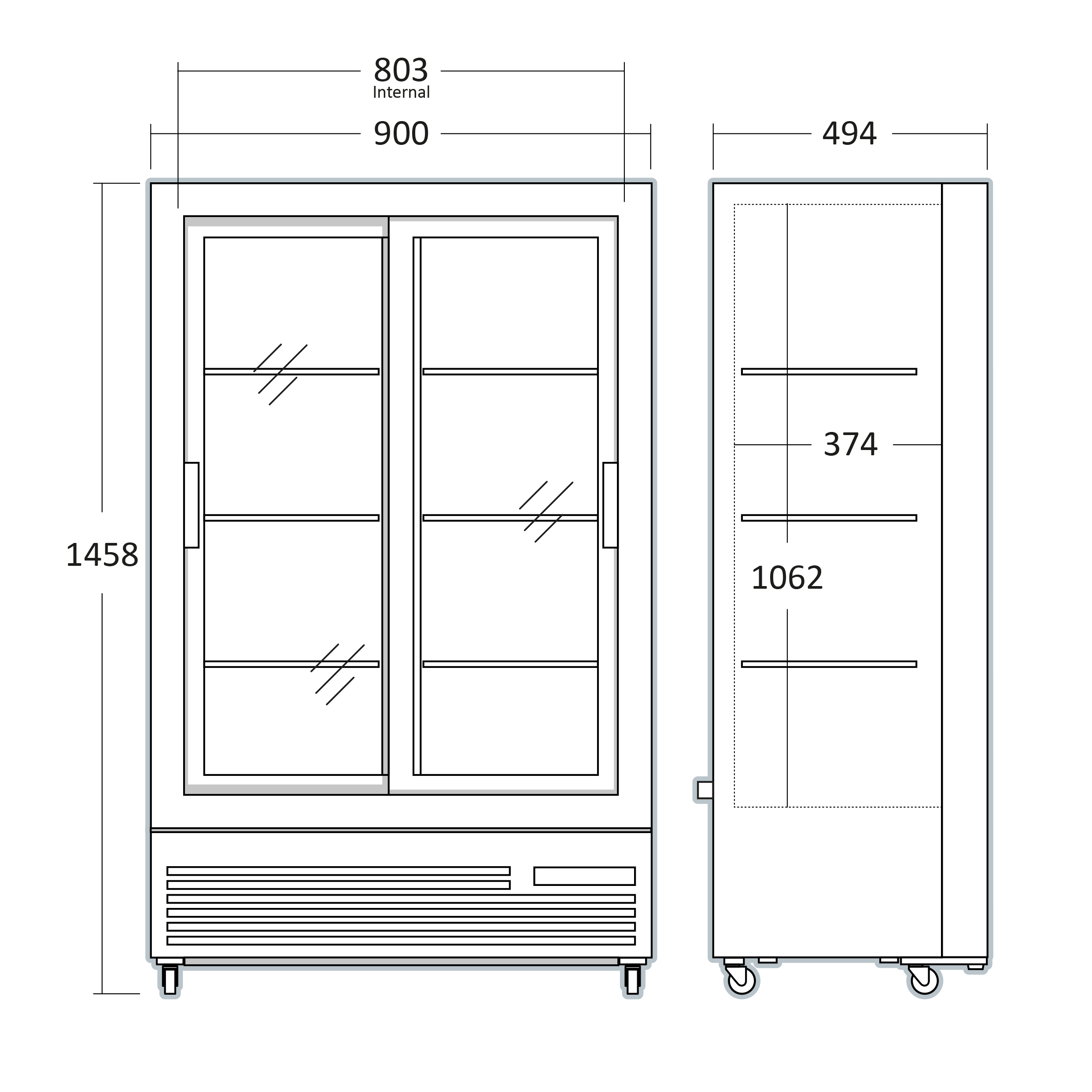 - Produkt dimension, HxBxD, mm 1454 x 900 x 495