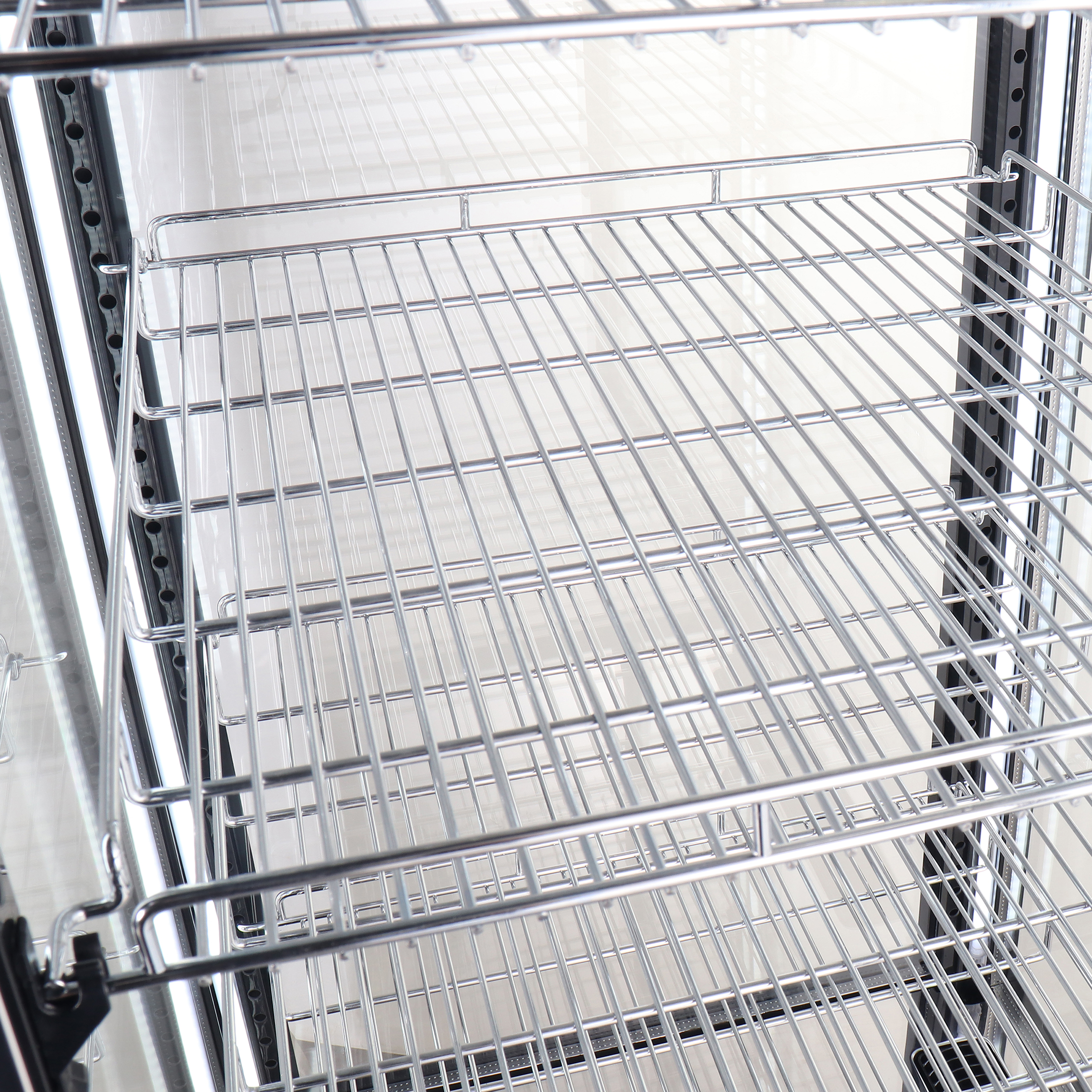 Vitrinskåpets fulla potential kan utnyttjas med ytterligare hyllor för att förvandla det till en elegant vinkylare som presenterar viner i perfekt temperatur - perfekt för restauranger, vinbarer och caféer. Vinhyllorna köps som ett extra tillbehör.