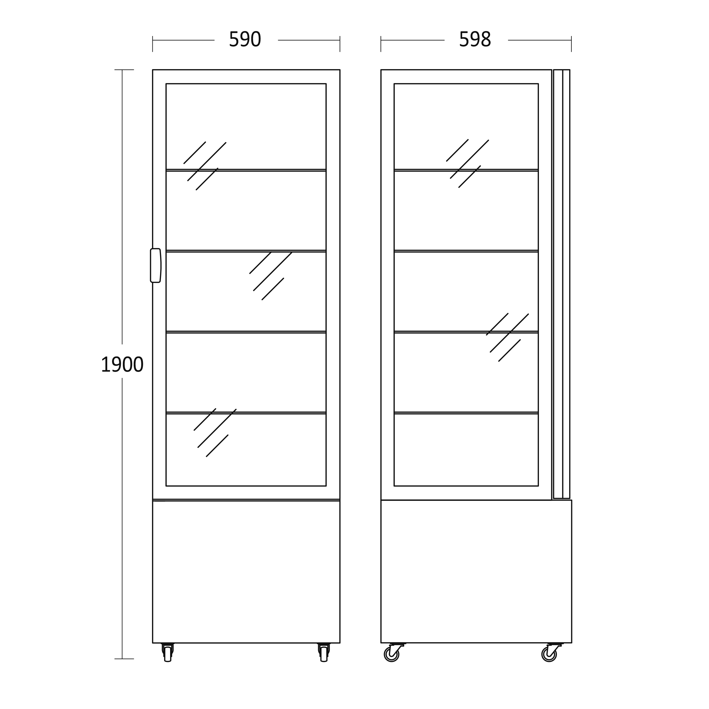 - Produkt dimension, HxBxD, mm 1900 x 590 x 598