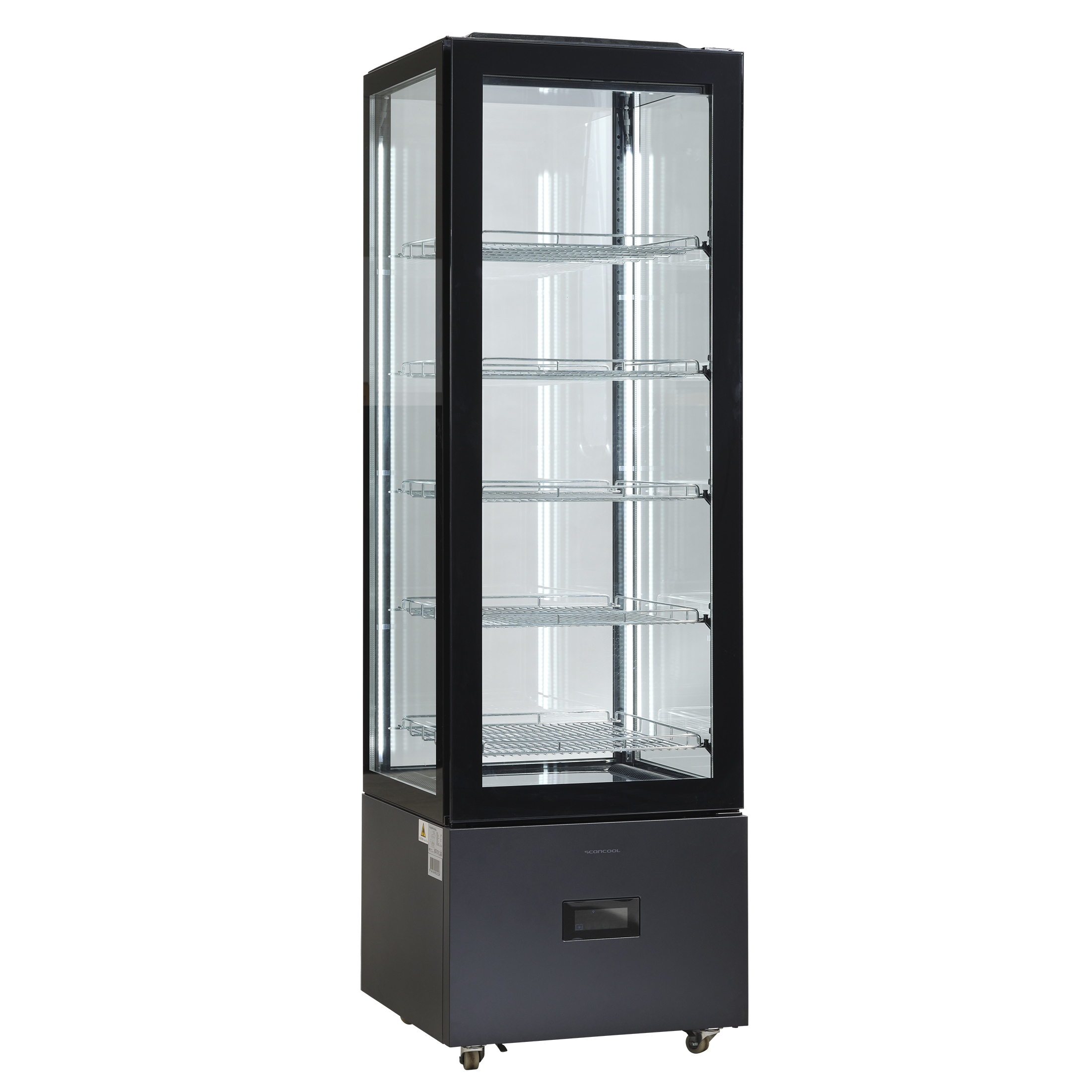 Framhäv delikatesser på det mest inbjudande sättet med Scancools stående försäljningsställ som kombinerar snygg design med optimal synlighet. Med glasväggar på alla fyra sidor ger vitrinen en 360-graders presentation så att produkterna alltid ser bäst ut - perfekt för smörgåsar, kakor, drycker och andra frestelser i caféer, restauranger, bagerier och butiker.