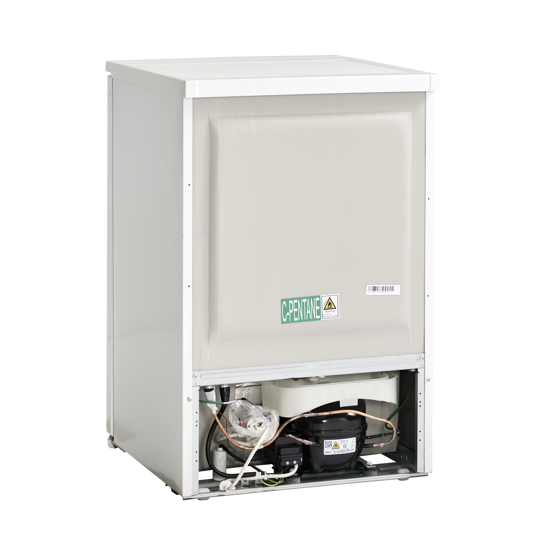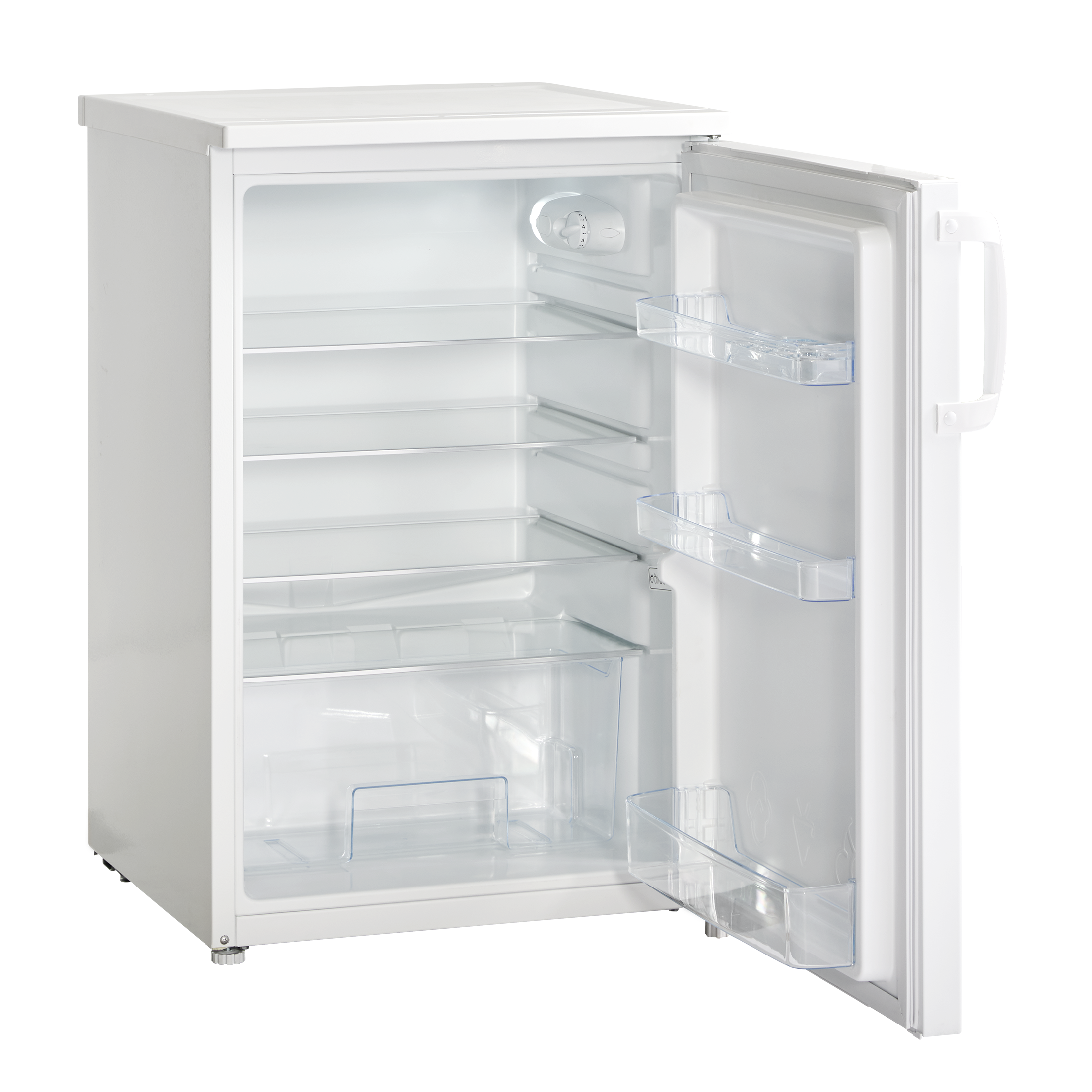 Bordskylskåp i vit design och energisnålt med 130 liter. Skåpet kan stå fritt, så skåpets topplatta ger ett extra utrymme för dig. RFT126WE innehåller 3 hyllplan i säkerhetsglas som är justerbara, och därmed lätta att arrangera. Kylskåpet är utrustat med energivänlig LED-lampa och vändbar dörr.