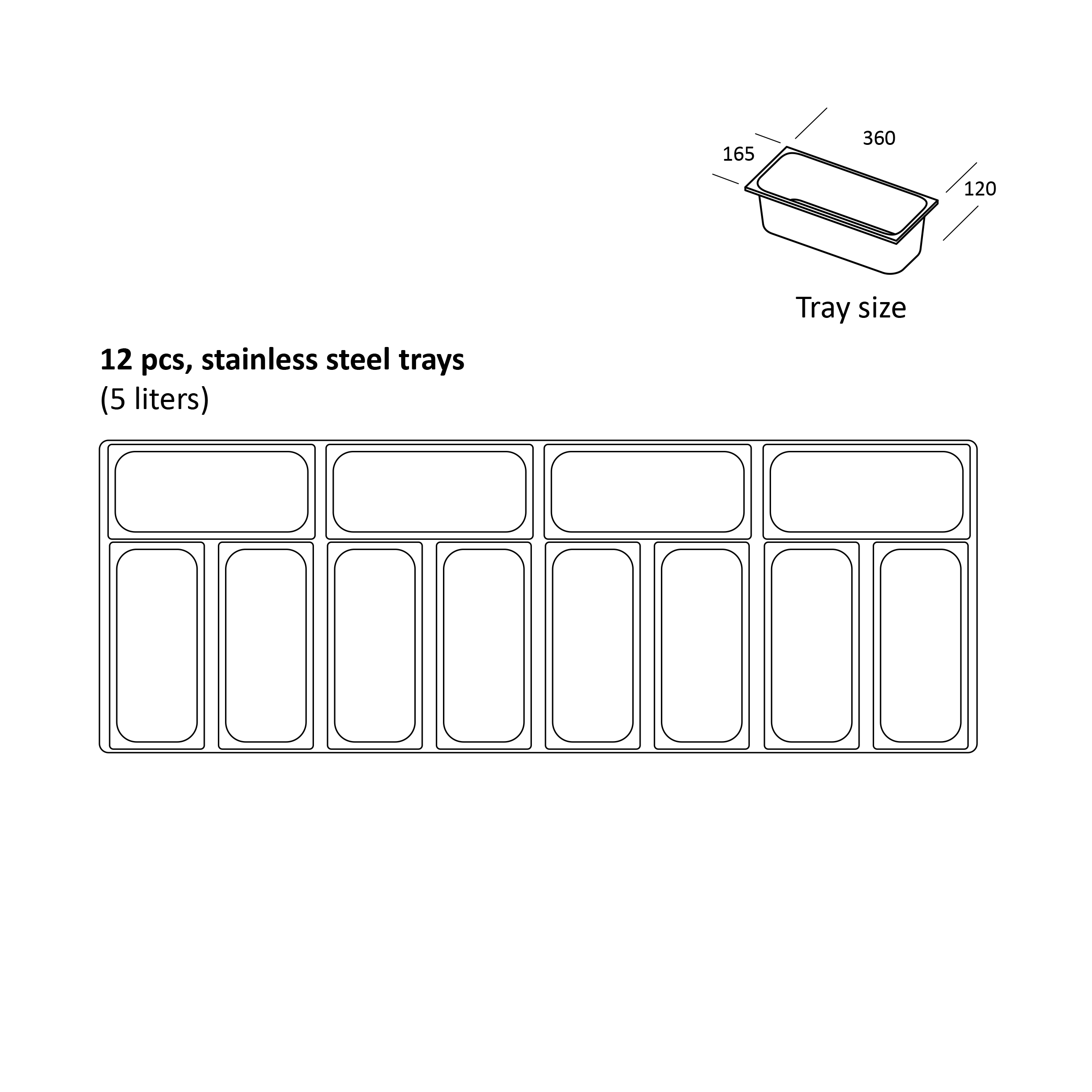 - ■ Innehåller en komplett uppsättning med 12 stycken 5L Napoli-pannor i rostfritt stål