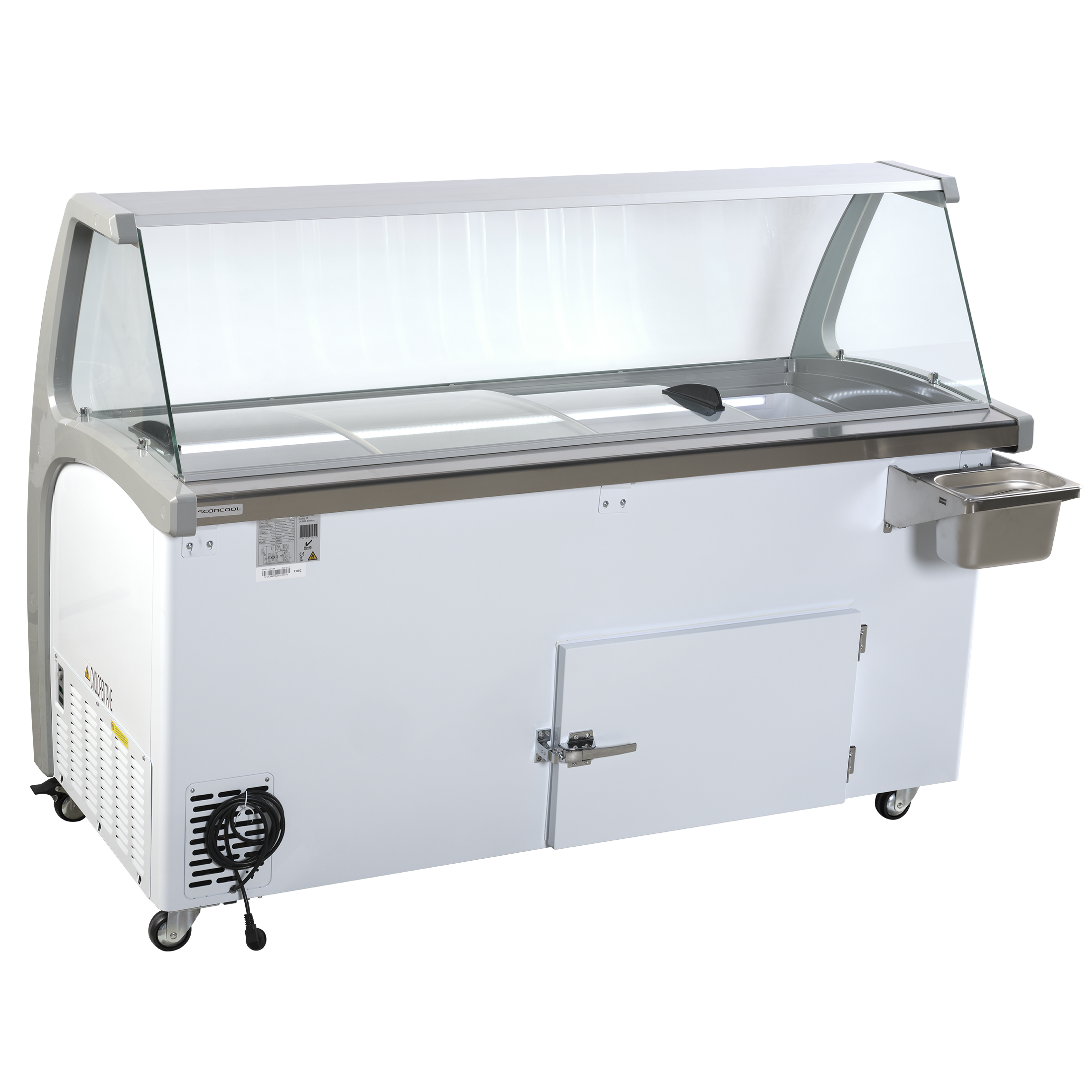 Frysen har ytterligare förvaringsutrymmen under behållarna, som nås via en separat bakdörr med plats för 20 fyllda iscannor. Facket är också idealiskt för reservvaror eller tillbehör.