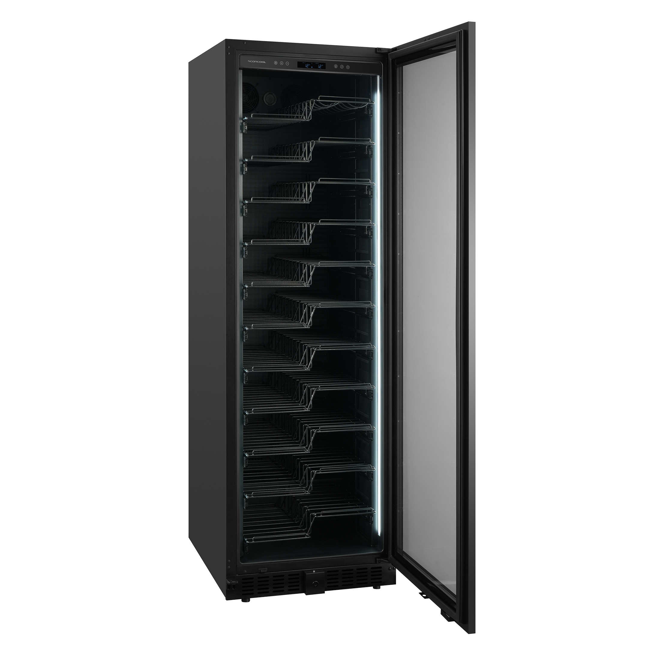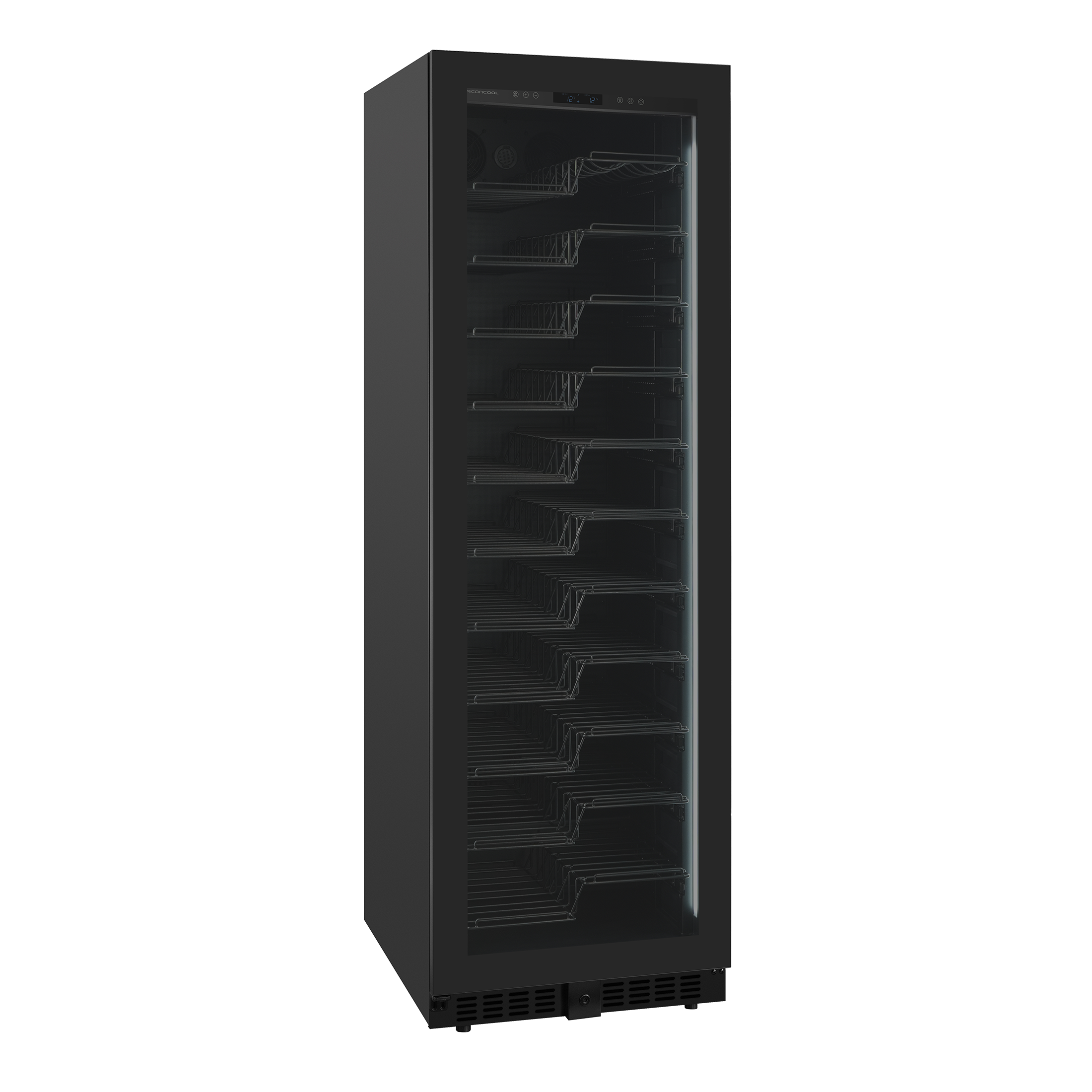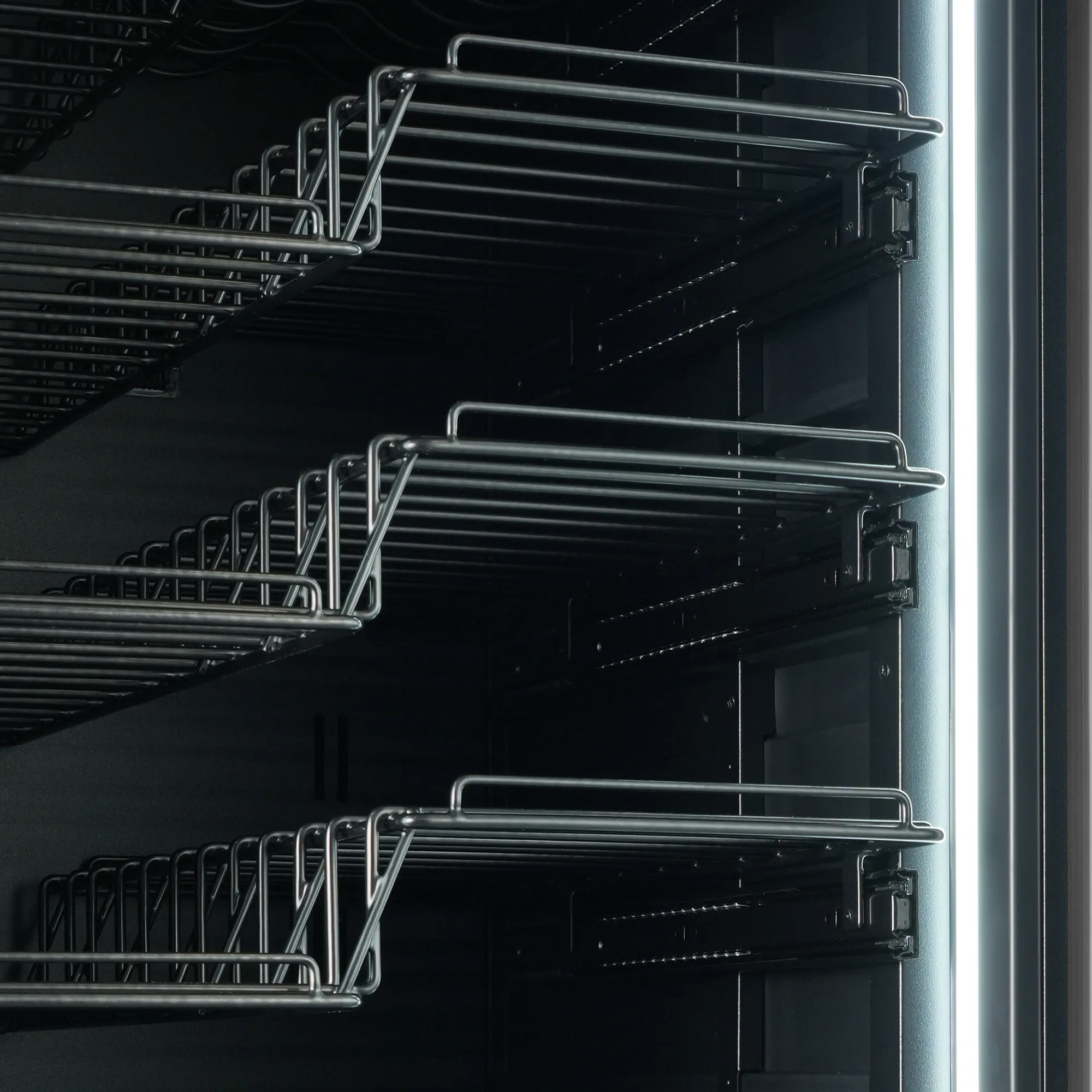 - ■ 11 svarta Z-formade hyllor med 100% utdragbara hyllor, en för Magnum-flaskor