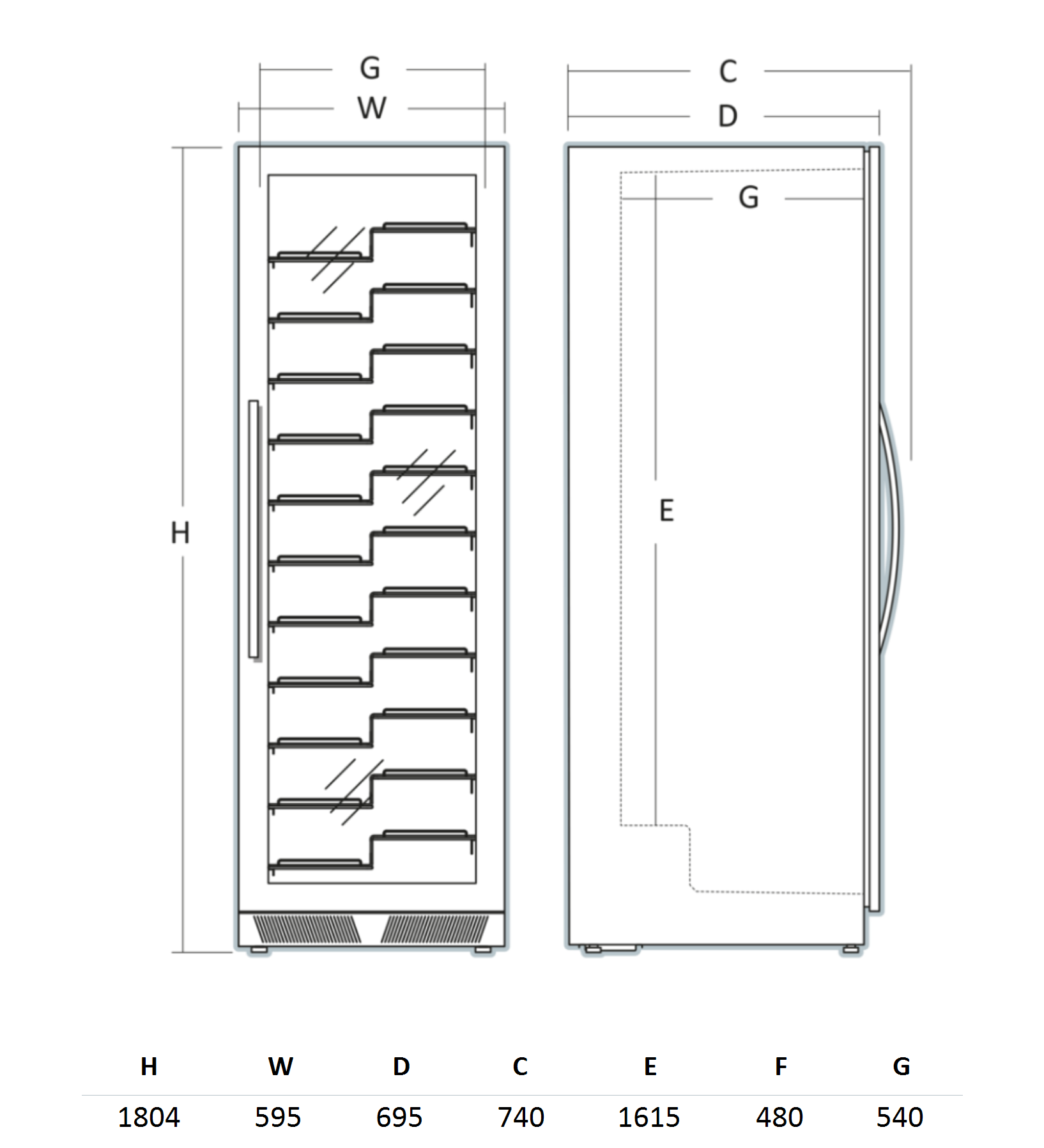 Produkt dimension, HxBxD, mm: 1804 x 595 x 695