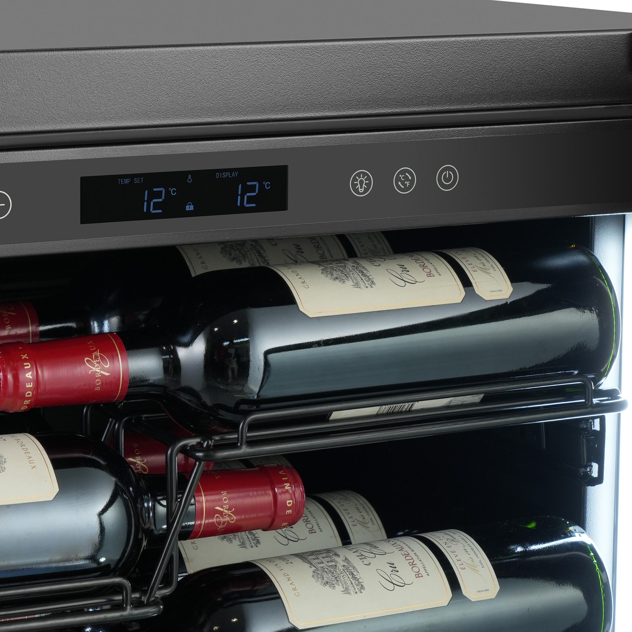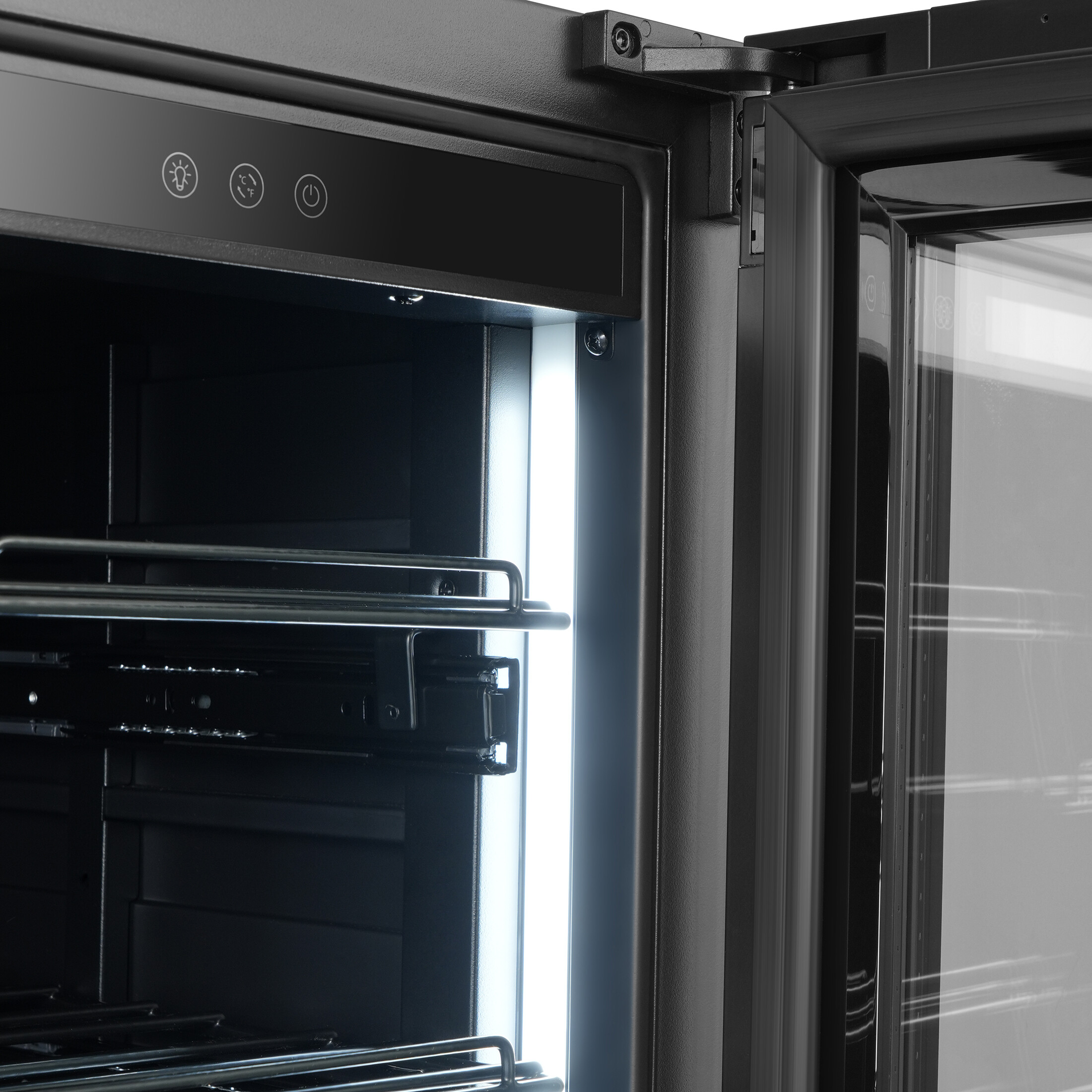 - ■ Dörr i 3 lager härdat glas i tonad färg för att filtrera UV-strålar