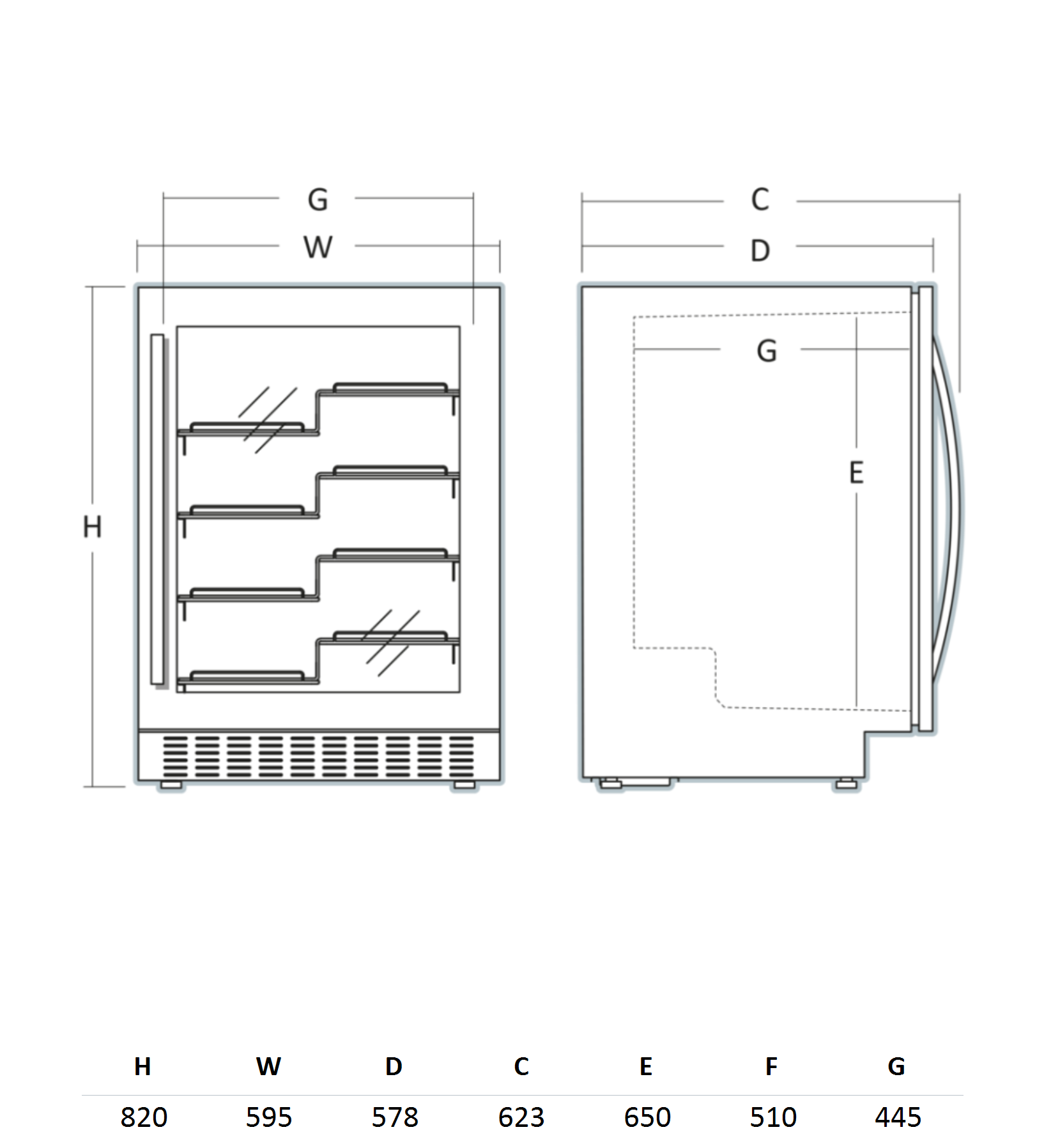 Inbyggnadsdimesioner (HxWxD), mm: 830 x 605 x 613