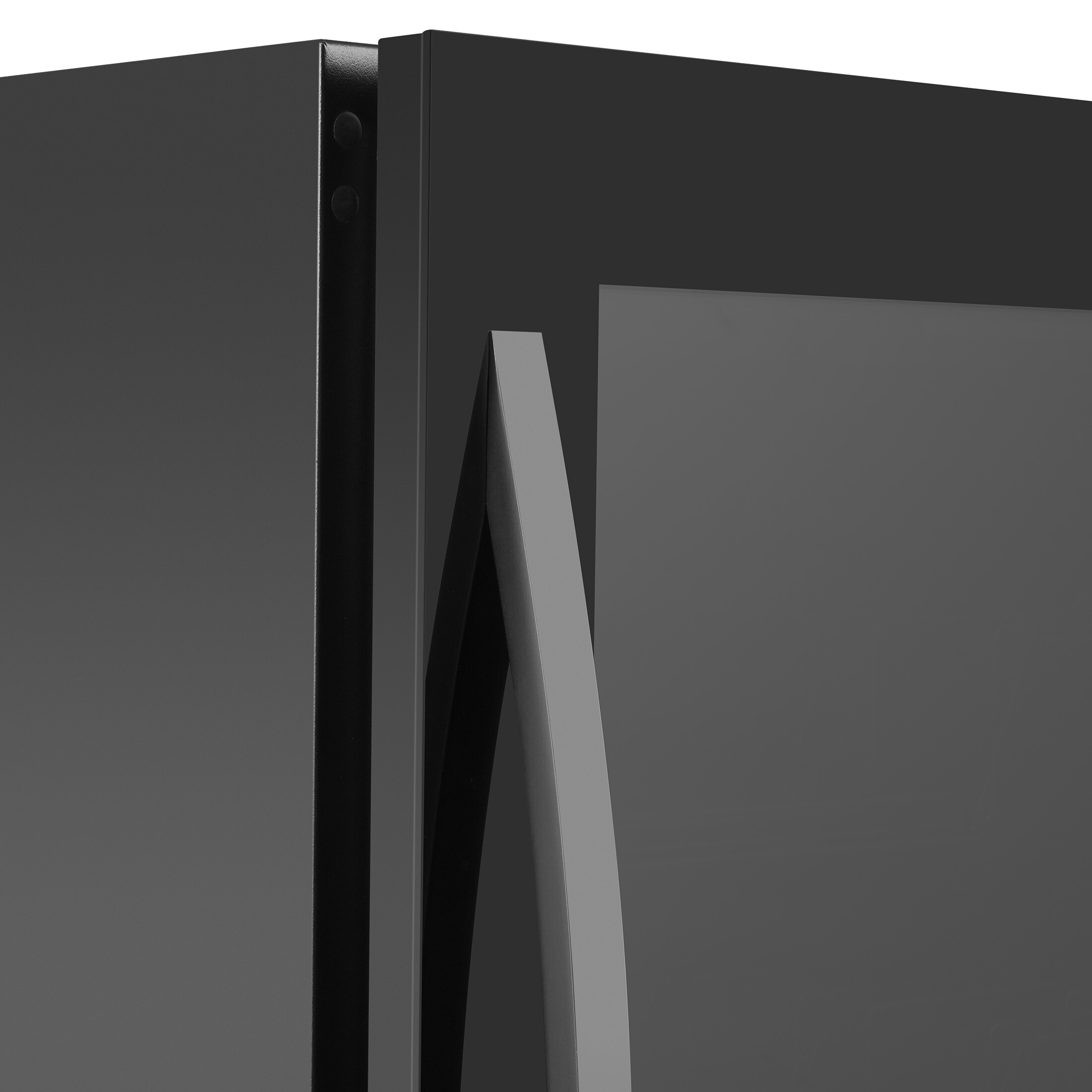 - ■ Tynd sort helglasdør uden synlige hængsler